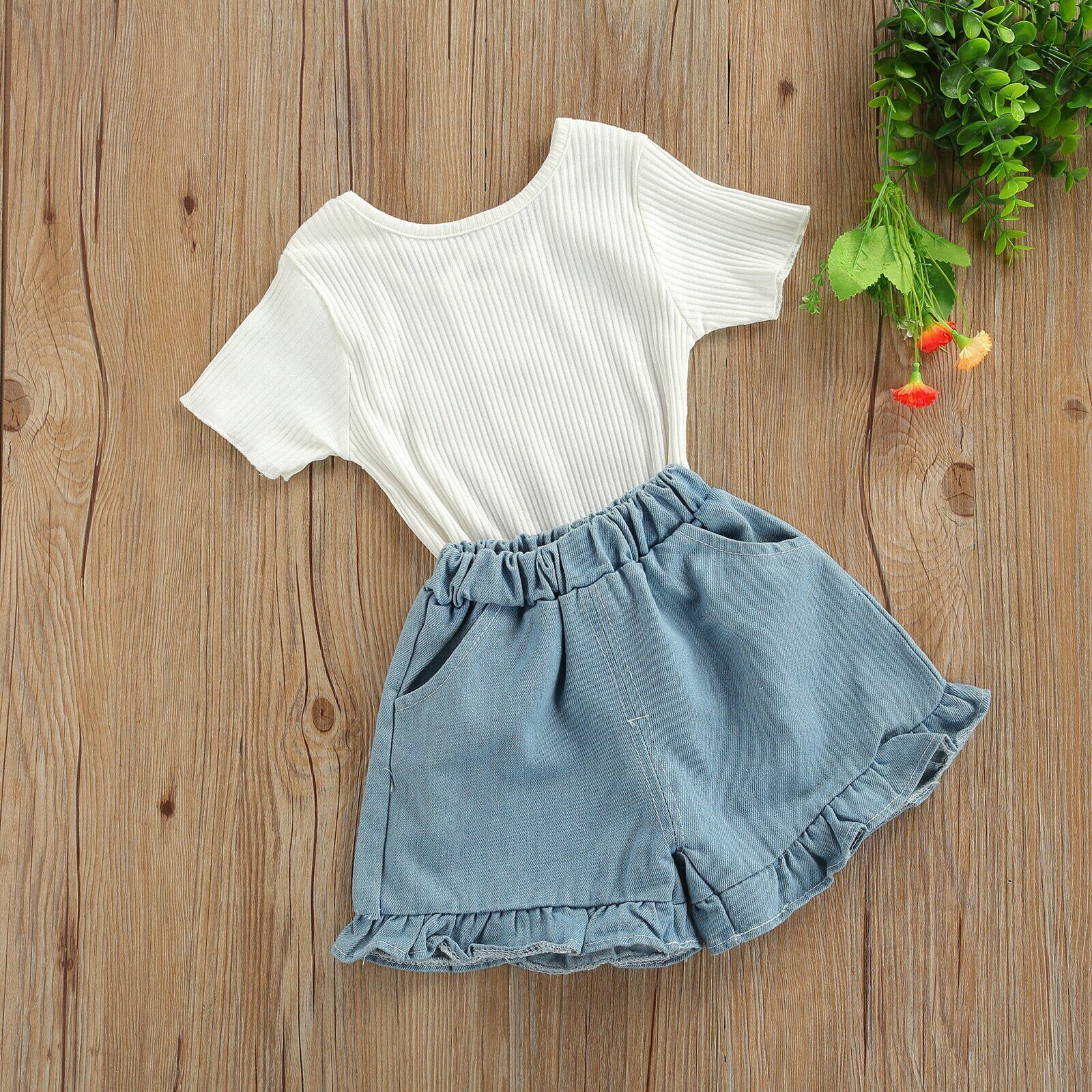 新作 Ma&Baby2-6Yサマー幼児ベビーキッドガール服セットニット半袖Tシャツフリルショーツ衣装チャイルドガール