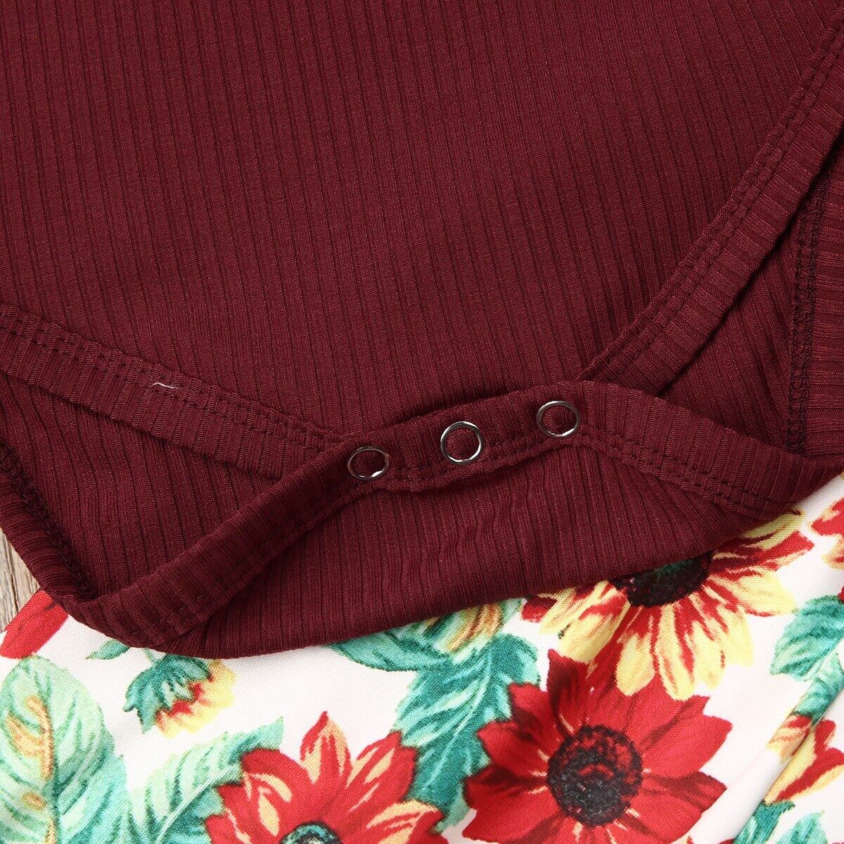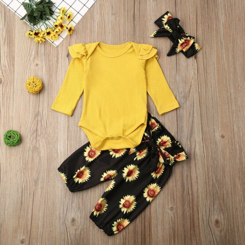 新作 秋冬幼児ベビーガールズキッド長袖フリルロンパースボディスーツコットントップスひまわりパンツ衣装服0-18M