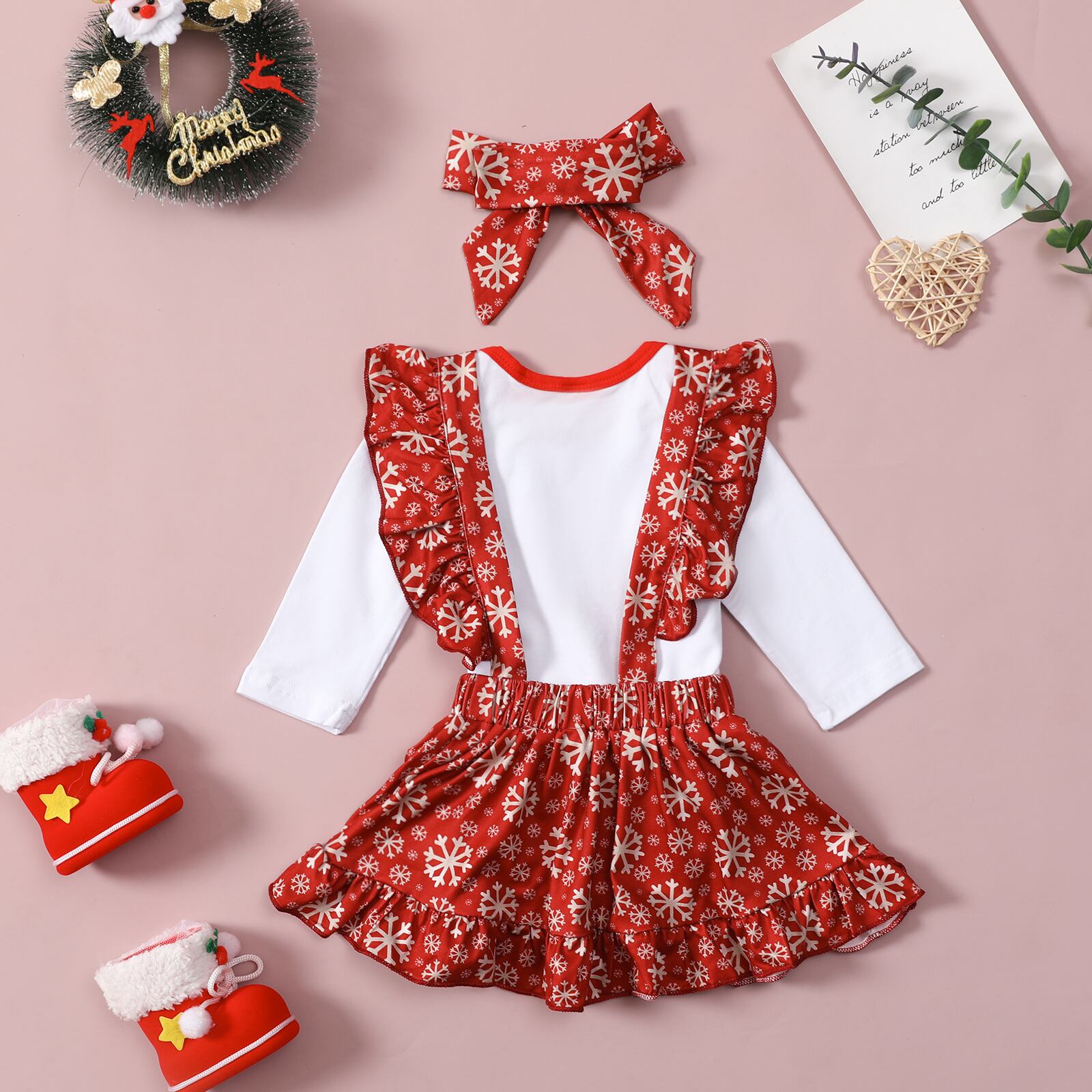 新作 クリスマスベビーガールズ秋のパーティー服セット0-24M3pcs漫画印刷ロンパーストップス+よだれかけストラップドレス+ヘッドバンド