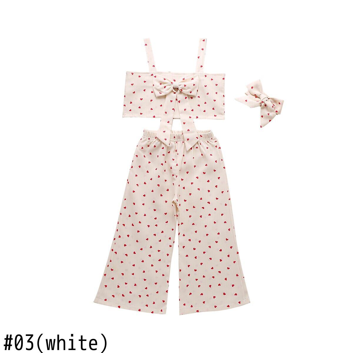 新作 Ma&Baby1-6Y夏の幼児の子供キッドガールの服セットハートプリントバレンタインデーの衣装ボウベストフレアパンツホリデートラベル