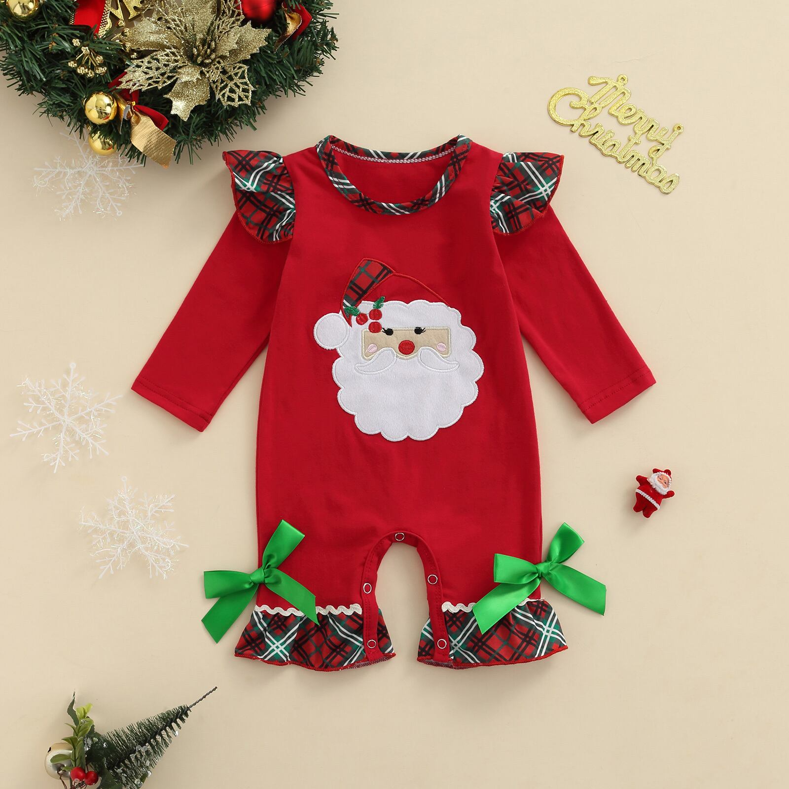 新作 Ma&Baby0-18M最初のクリスマス生まれの幼児の赤ちゃんの女の子のジャンプスーツフリル長袖ロンパースサンタパターンクリスマスsD84