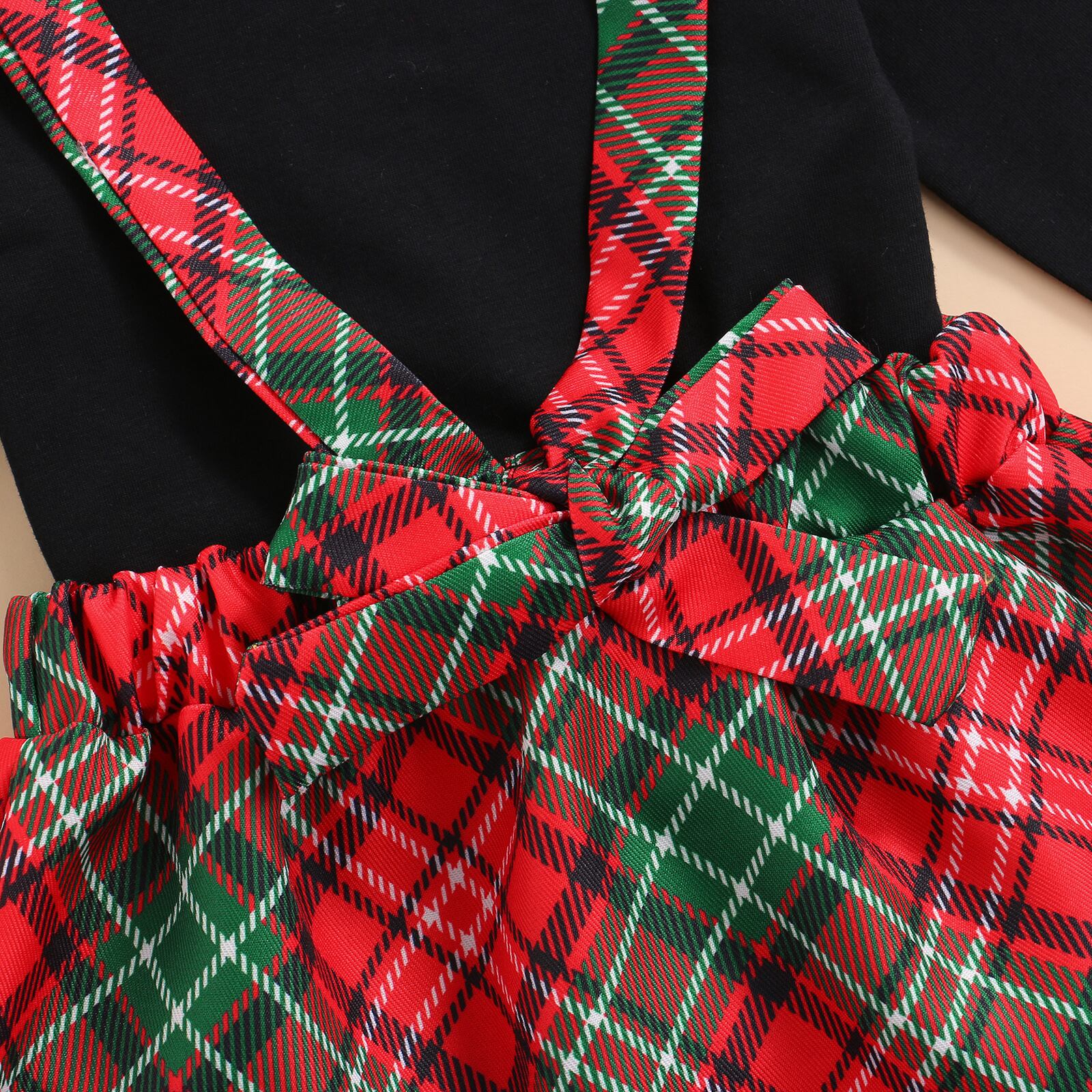 新作 キッズベイビーガール&rsquosスカートツーピーススーツかわいいクリスマスプリント長袖トップスとサスペンダースカート1-6T