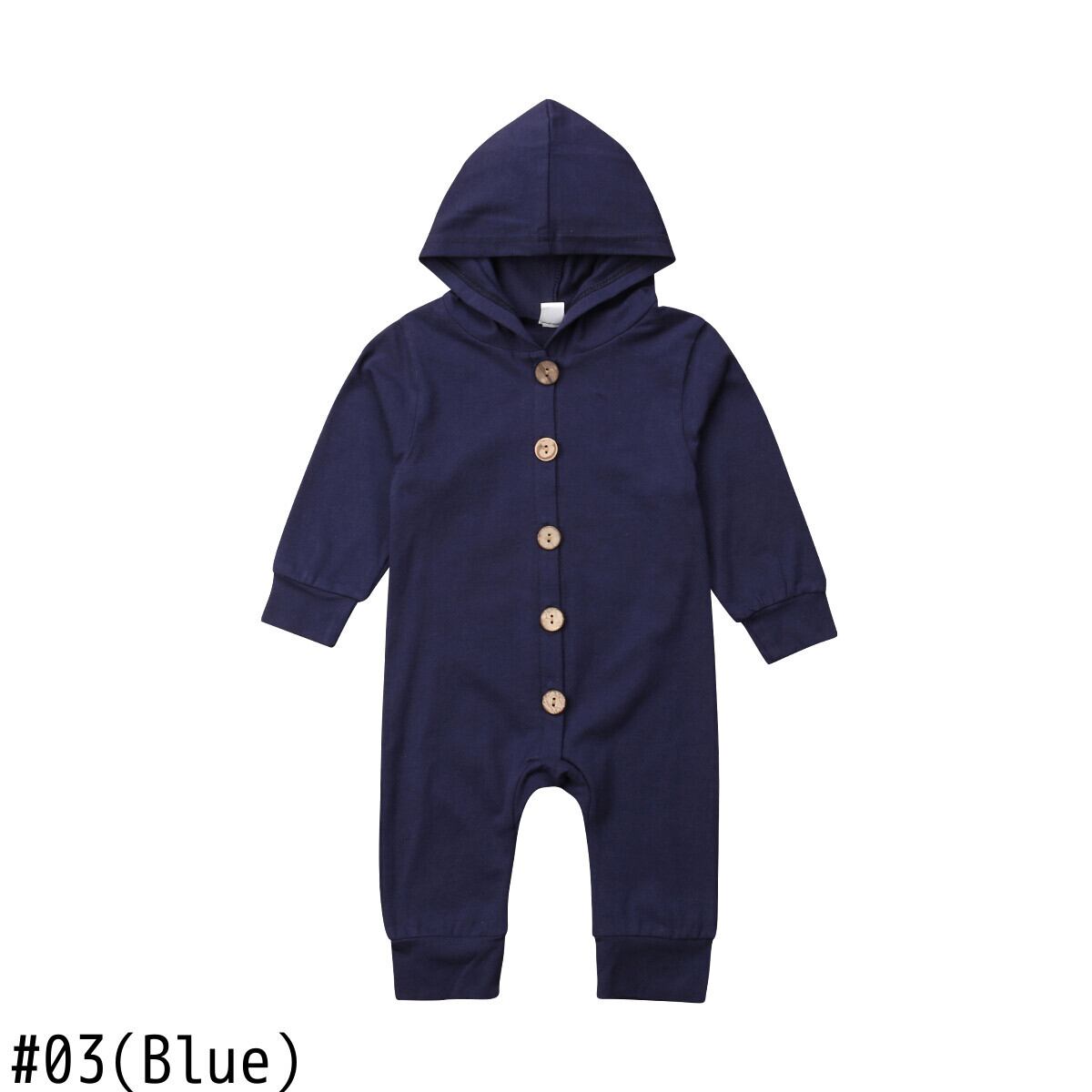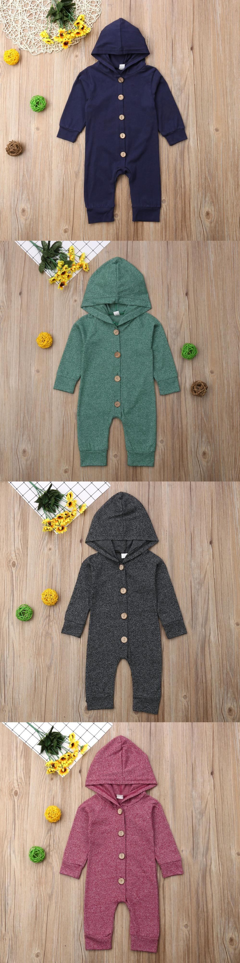 新作 秋冬ベビーキッズボーイズガールズ幼児ソリッド長袖フード付きロンパースジャンプスーツ服装0-24M