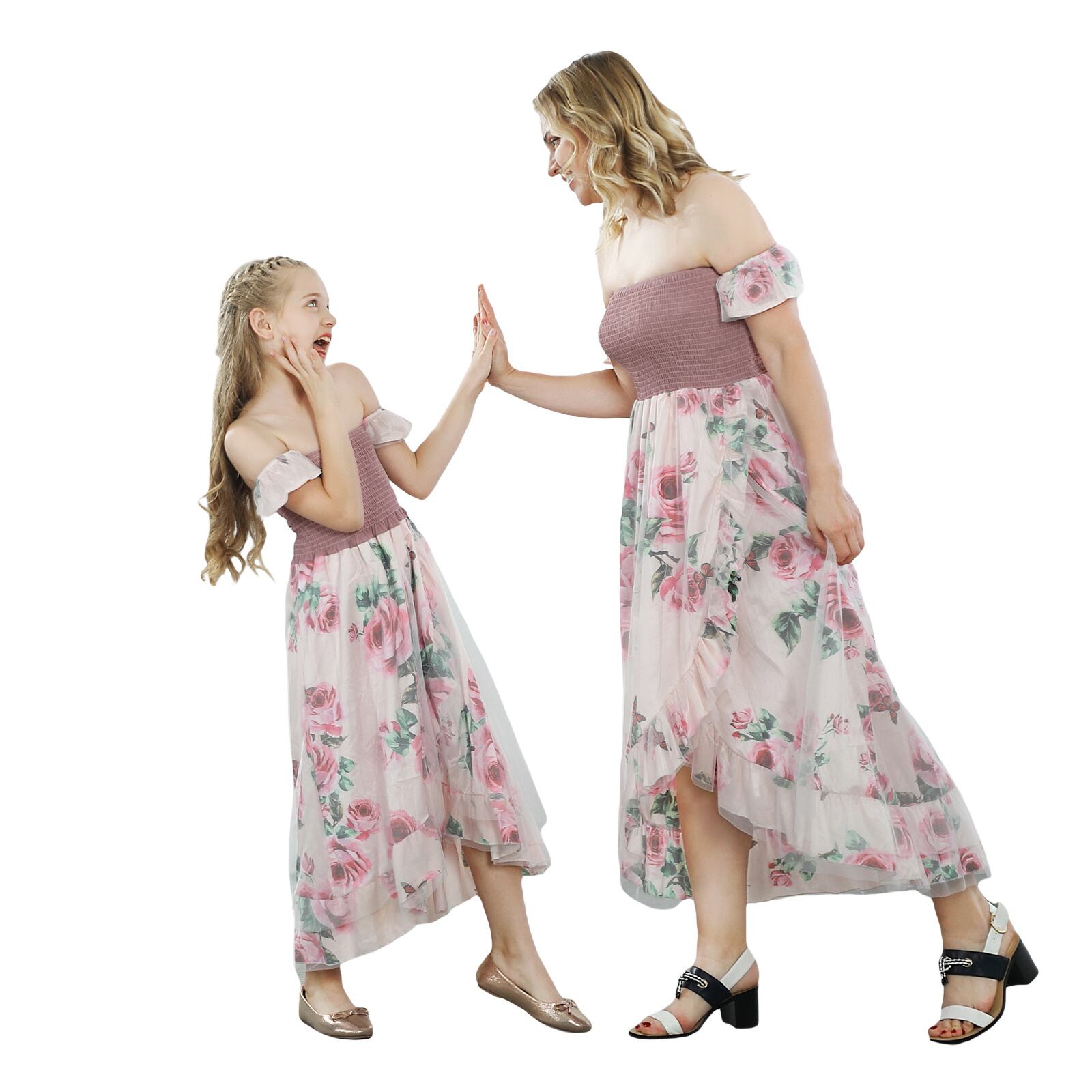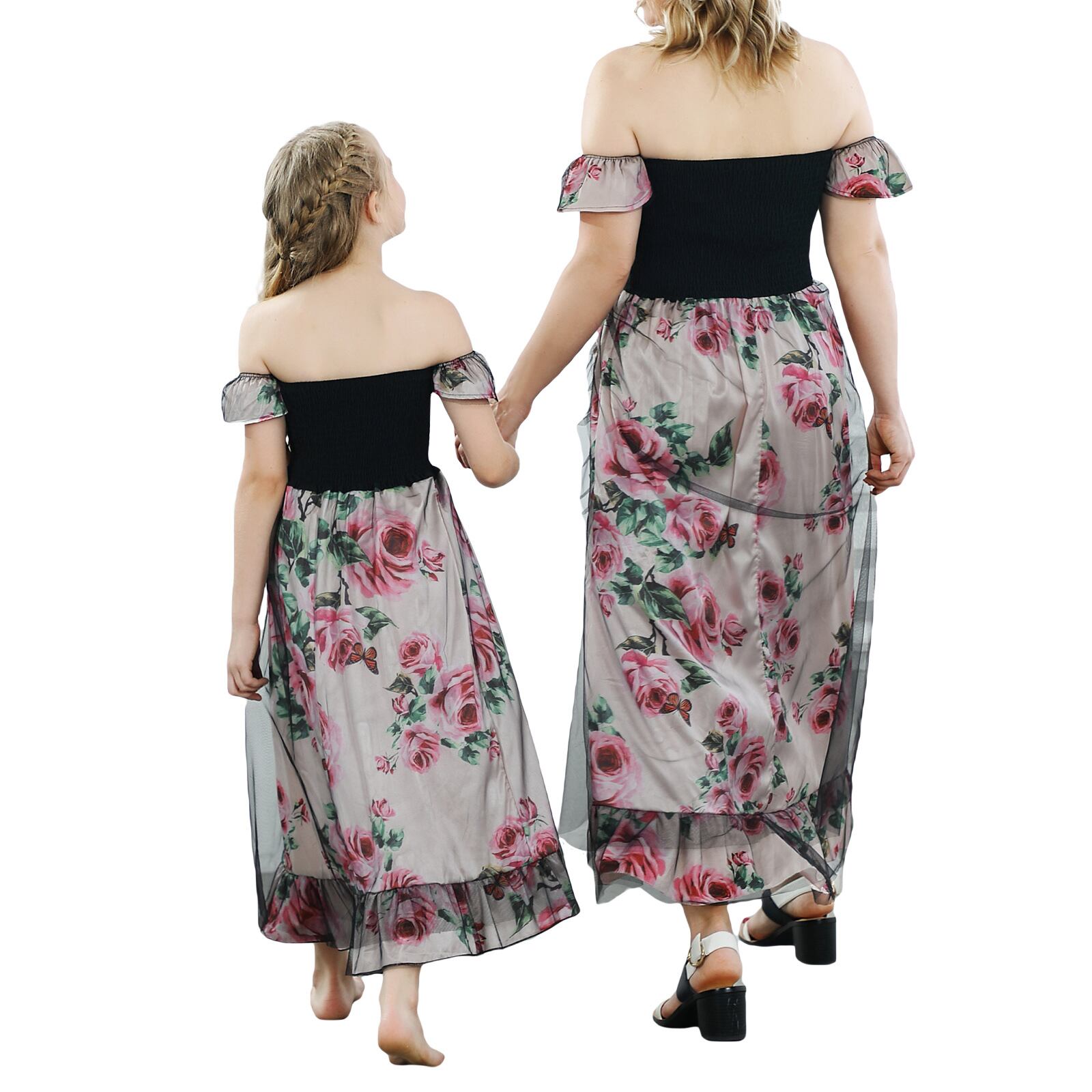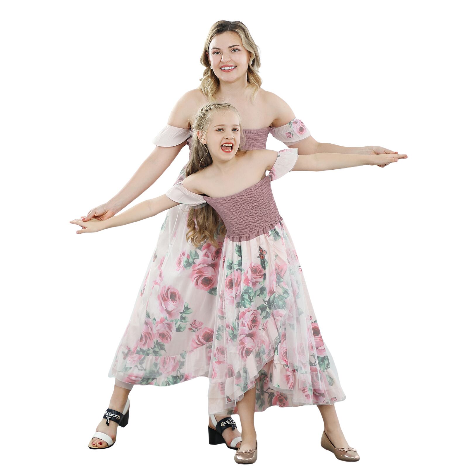 新作 Ma&BabyサマーファミリーマッチングオフショルダーフラワードレスママとガールトラベルホリデーファミリールックDD15