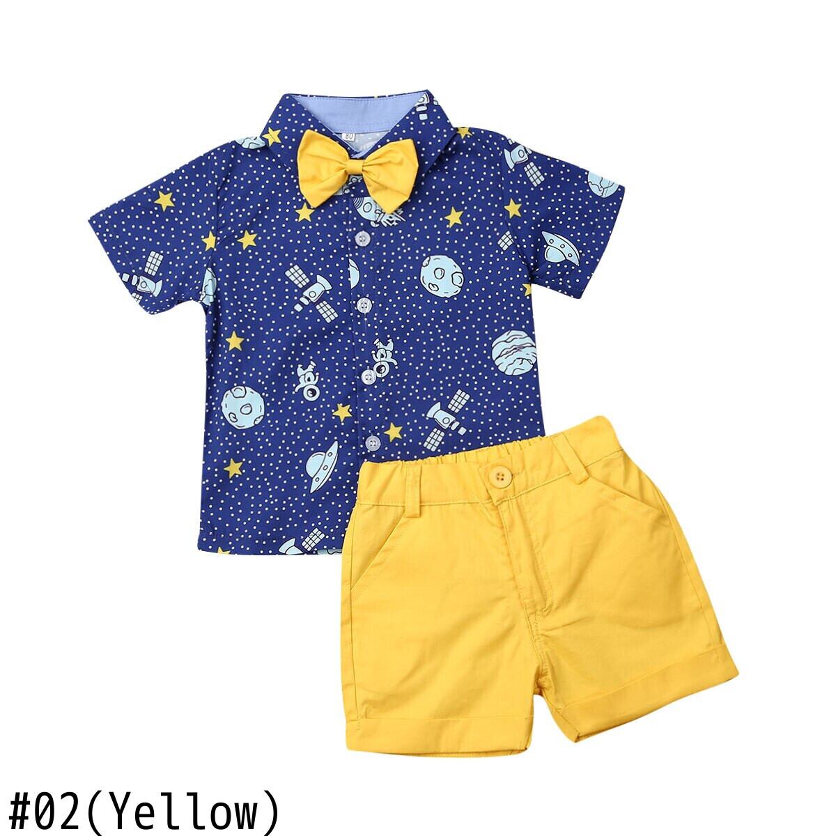 新作 夏の男の子の子供たちの結婚式マル紳士スーツ漫画ネクタイ半袖シャツ+ショートパンツセット0-5Y