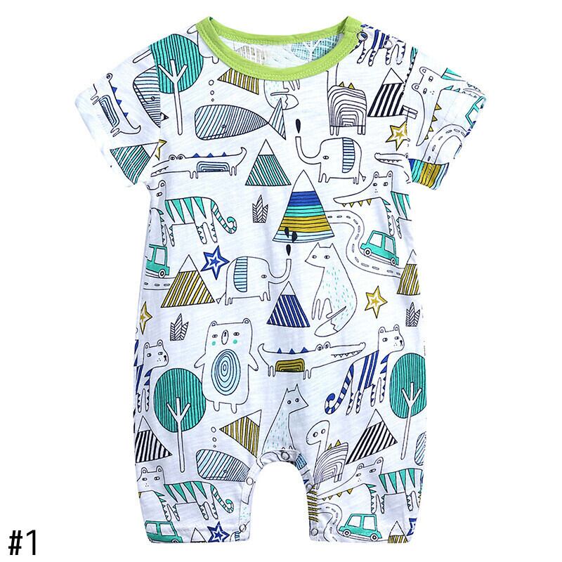 新作 0〜18ヶ月男の子服生まれ漫画プリントジャンプスーツ幼児夏半袖オーバーオール幼児ルーパスワンピースロンパース