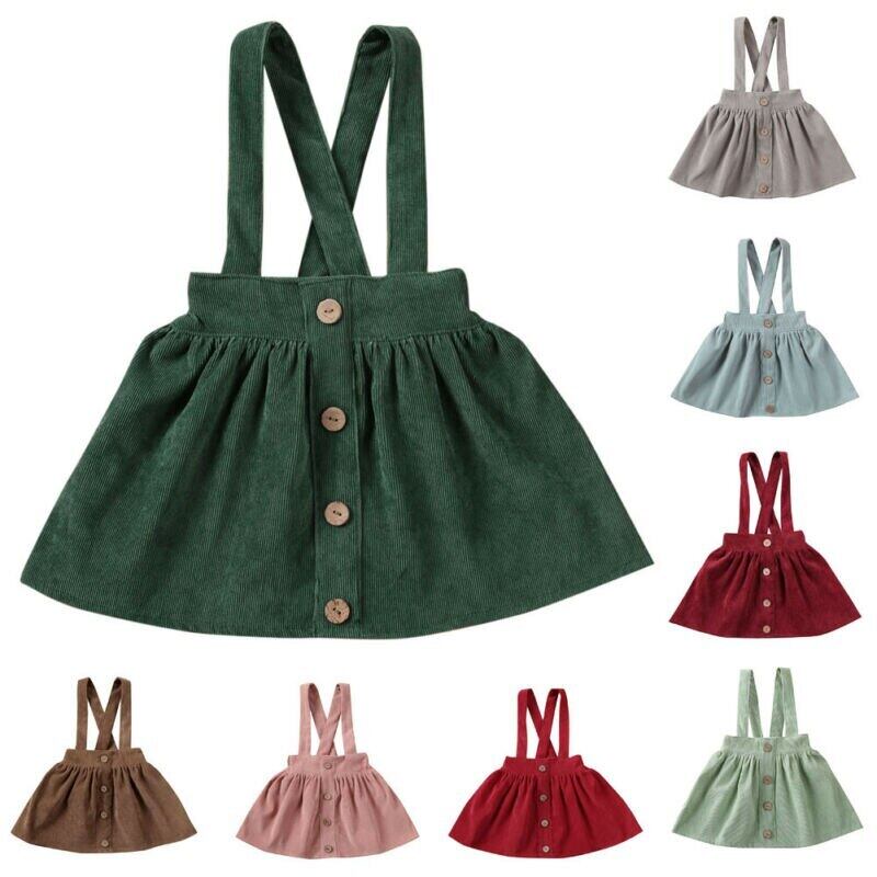 新作 幼児キッズベビーガールズパーティーコーデュロイボタンストラップサスペンダーオーバーオールドレス衣装マルチカラー1-6Y