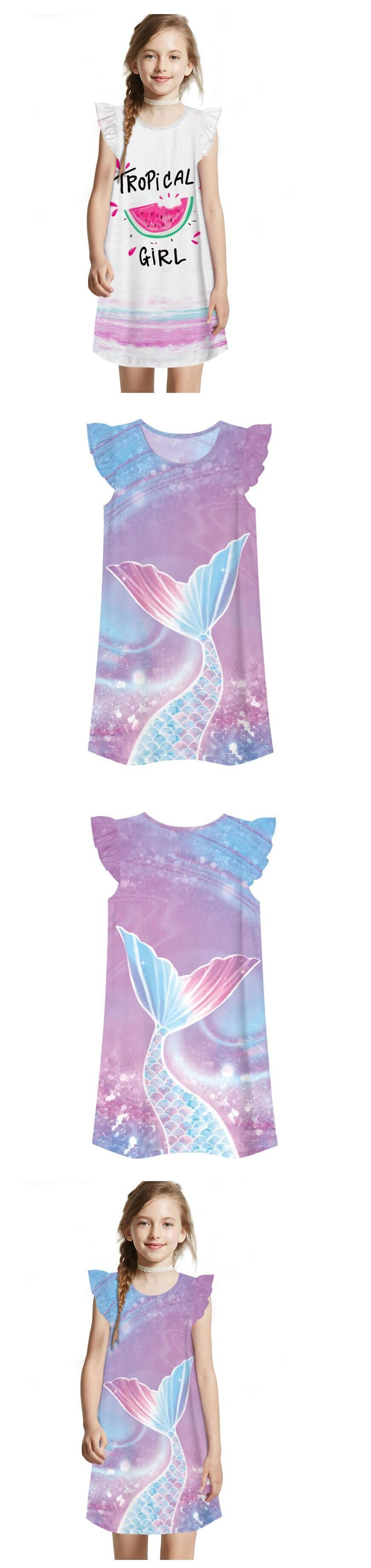 新作 サマードレスガールズプリント漫画Vestidosキッズパーティーユニコーンドレスベビー子供服ホームナイトドレス5-12年 夏物