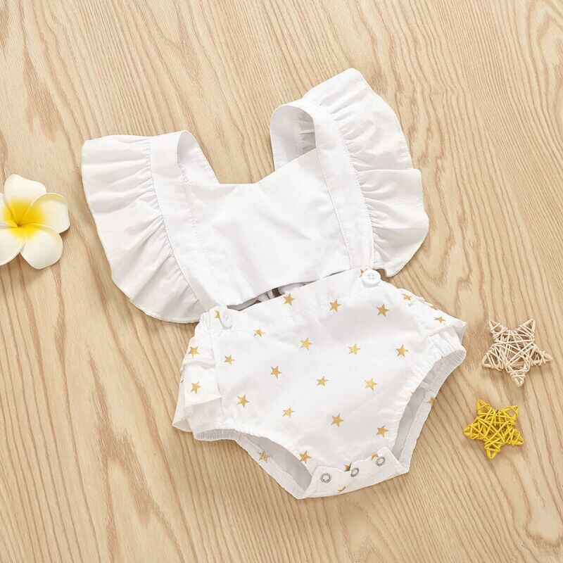 新作 綿生まれの女の赤ちゃんの服フリルノースリーブボディスーツ衣装セット0-24M