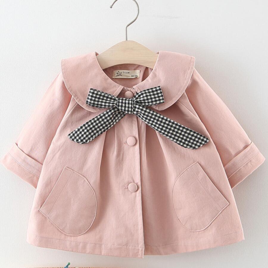 新作 ベビーガールズコート春秋ウィンドブレイクビッグポケットチェック柄ネクタイトレンチ幼児幼児ベビージャケット生まれの服0-2年 スプリング 春物 オータム 秋物