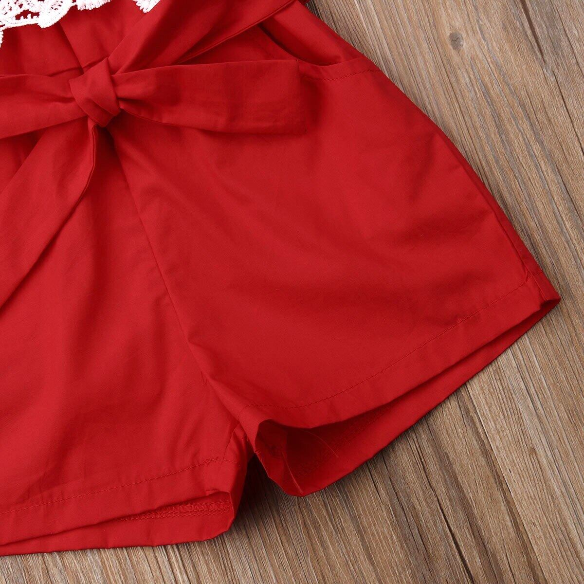 新作 赤黄色生まれの女の赤ちゃんレース夏ロンパースボディスーツジャンプスーツ衣装服プレイスーツ
