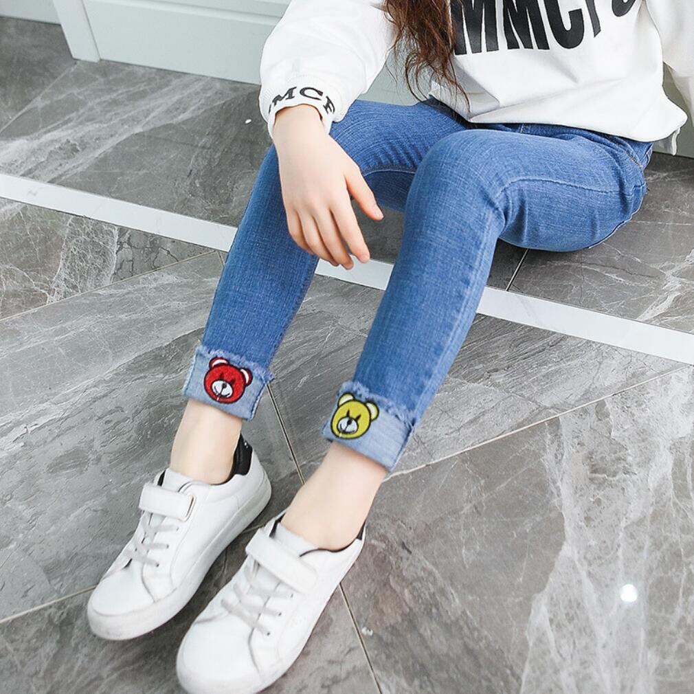 新作 ガールズジーンズ春秋子供服キッズ漫画猫刺繍ジーンズ鉛筆パンツジーンズベビーガールキッズジーンズ2-10歳 スプリング 春物 オータム 秋物
