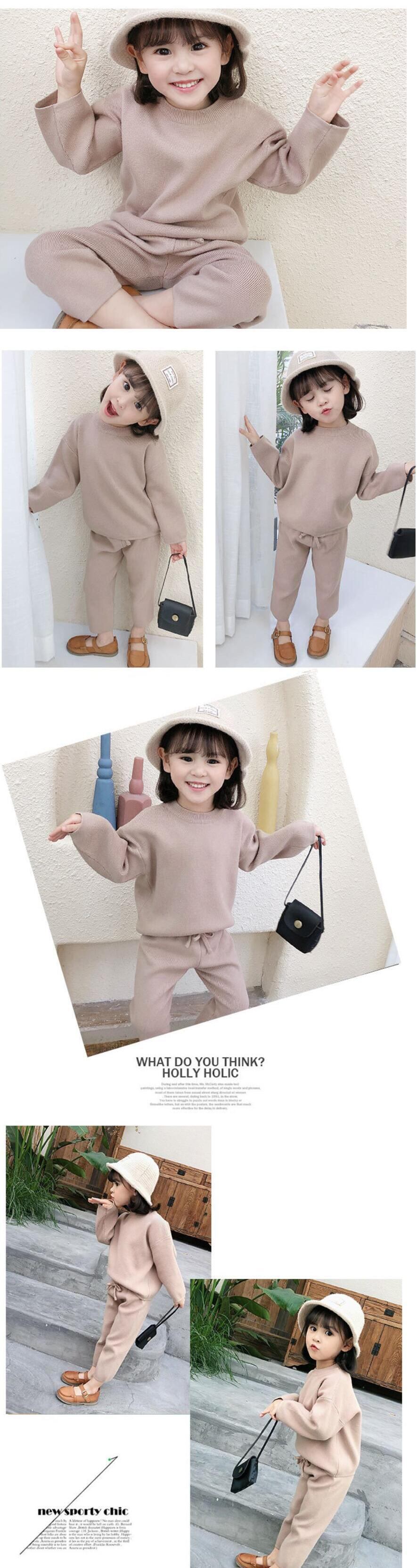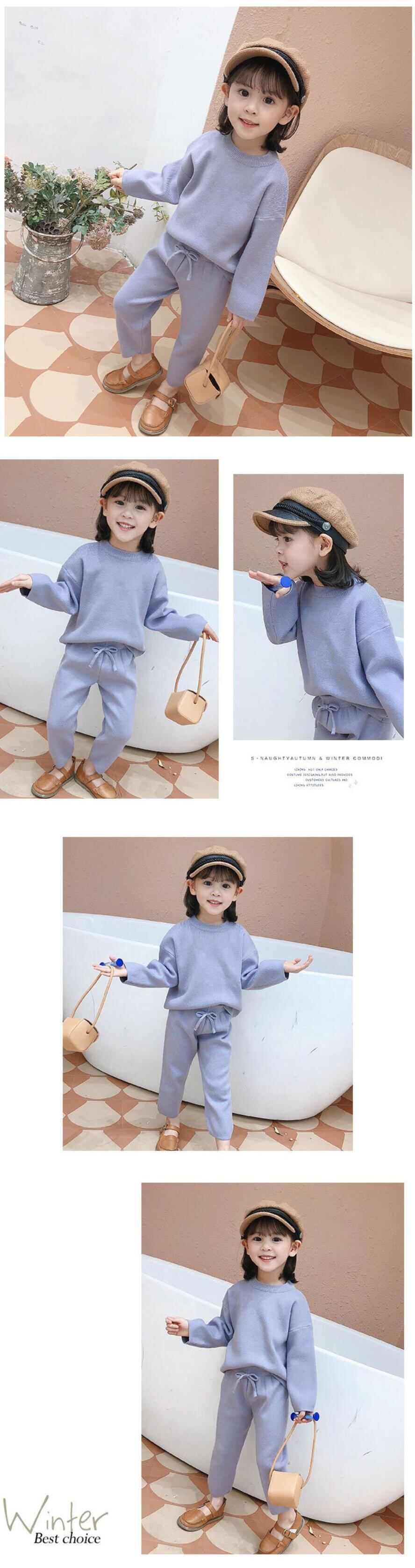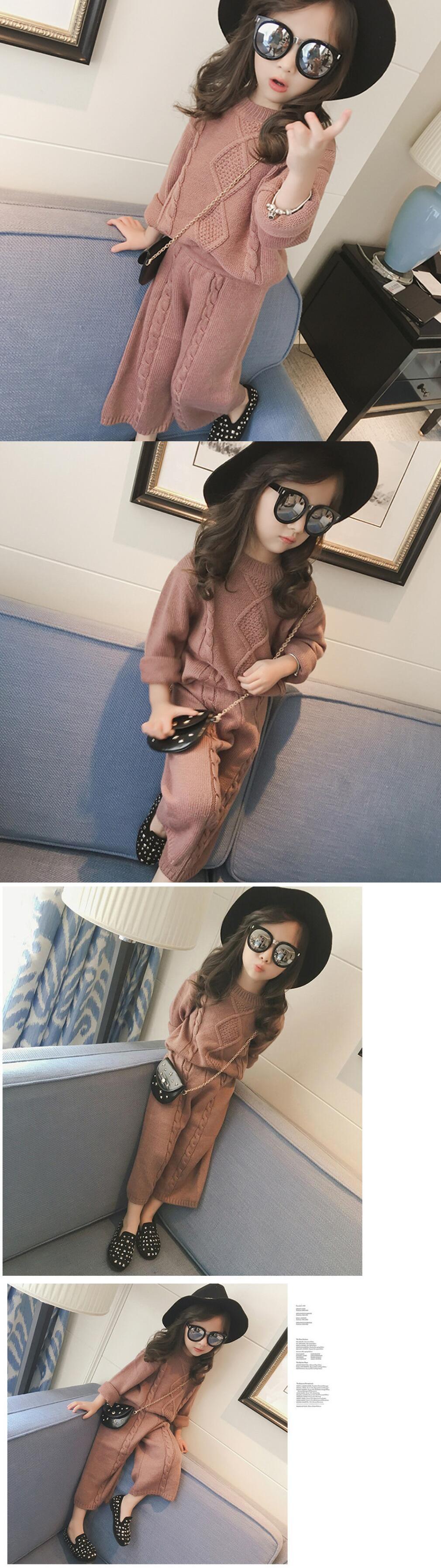 新作 秋冬ガールズベビーニットセータートップ+スカート2点セットガールウール服ウォームスーツ23 4 56年