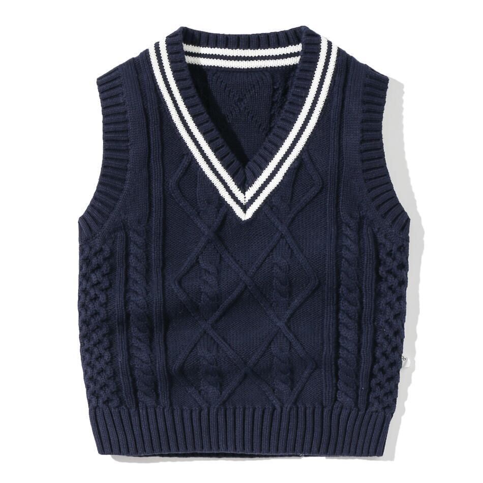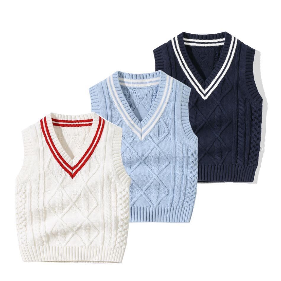 新作 秋の子供ベストボーイズプルオーバーVネックチョッキガールズ幼児ニットスクール冬のベビー服ノースリーブセーター