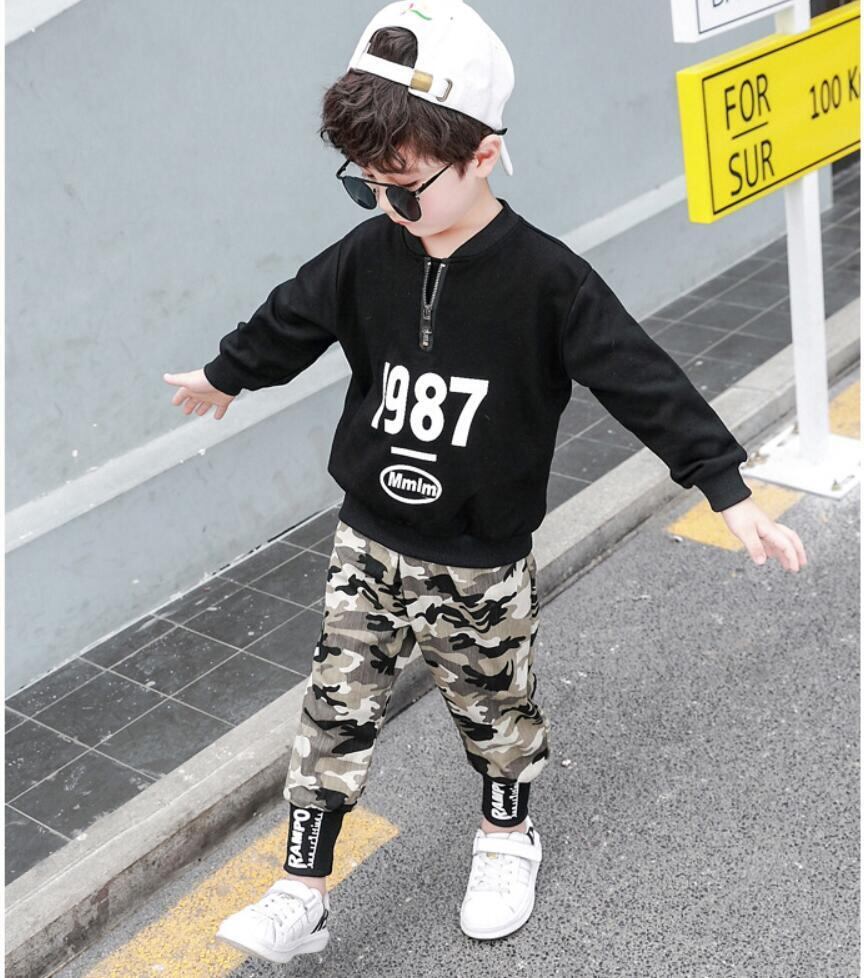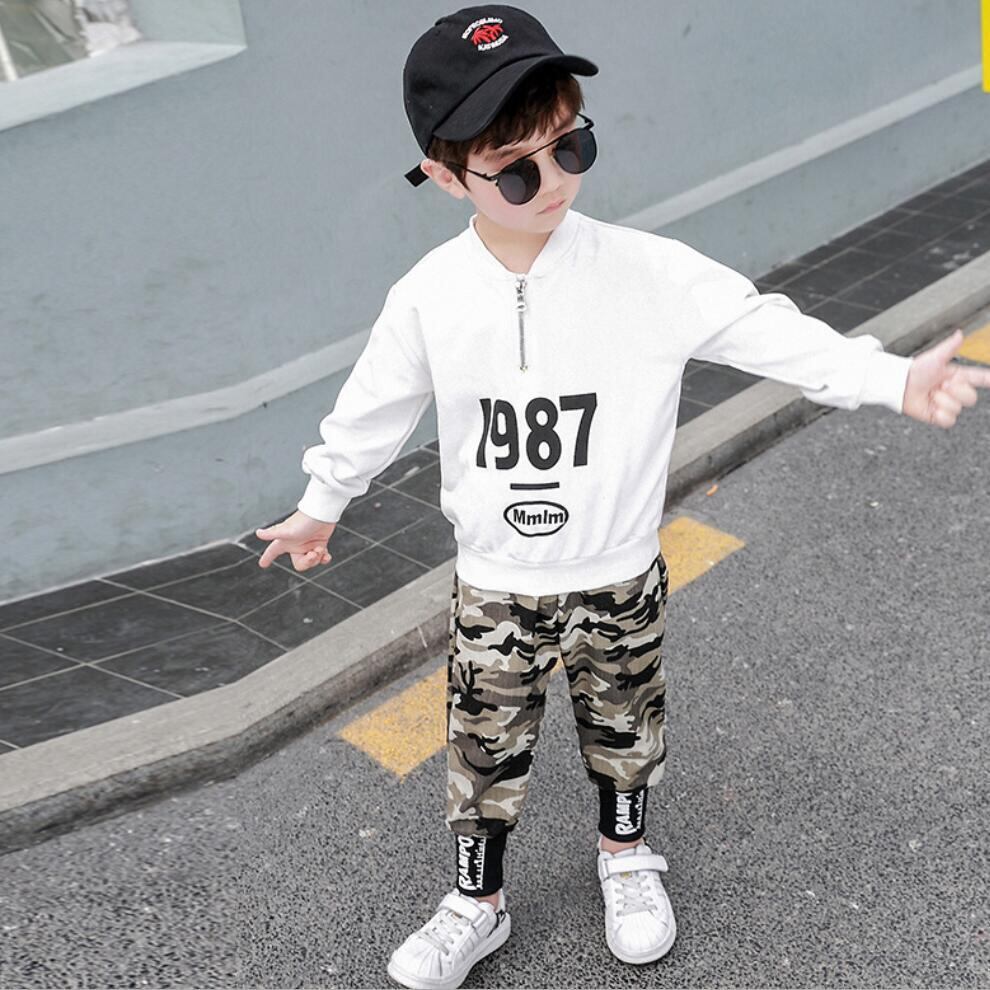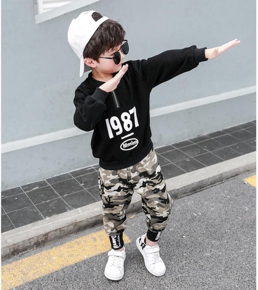 新作 秋のビッグボーイズセットサウスレター1987Tシャツとカーゴパンツツーピーススポーツスーツ10代のトラックスーツ オータム 秋物