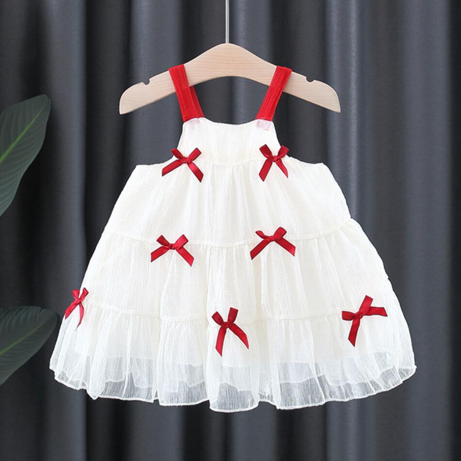 新作 2021年の女の赤ちゃんの服白赤シフォンチュチュかわいいショルダーストラップドレス夏の幼児の子供たちのクリスマス
