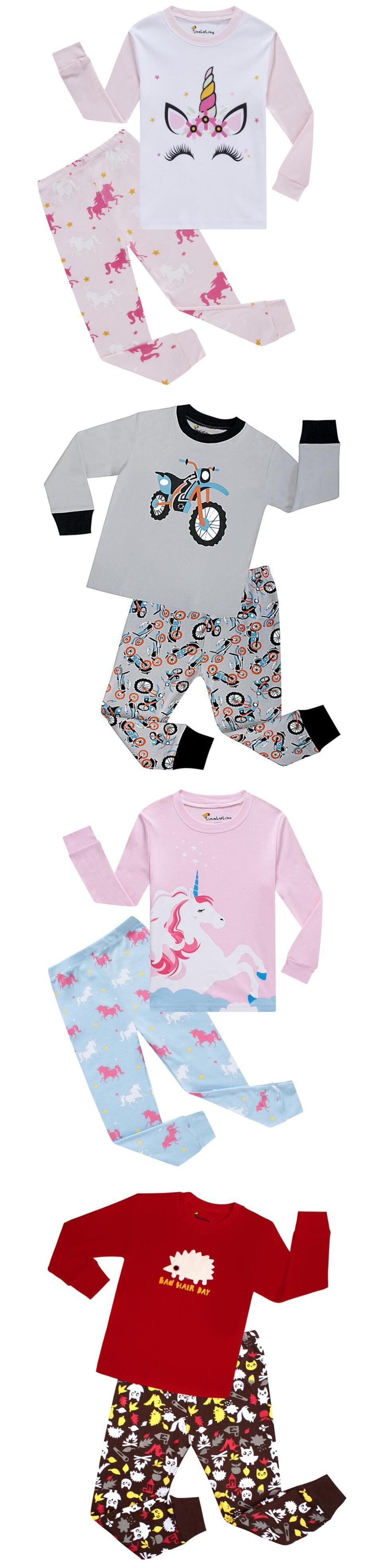 新作 秋の子供用セット寝間着服キッズユニコーンコレクションパジャマセットベビーボーイズガールズピジャマ漫画ホームウェア