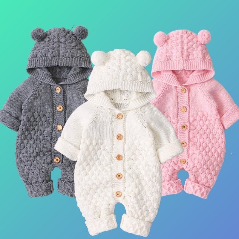 新作 ベビーロンパースフード付きカーディガン生まれの男の子女の子ジャンプスーツニットs子供用オーバーオールワンピース幼児子供服 キッズ