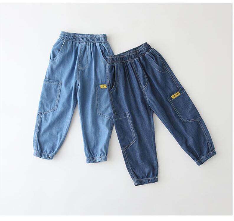 新作 キッズチルドレンパンツ春秋ポケットベビーソフトコットン薄デニムパンツキッズスポーツボーイズカーゴパンツ スプリング 春物 オータム 秋物
