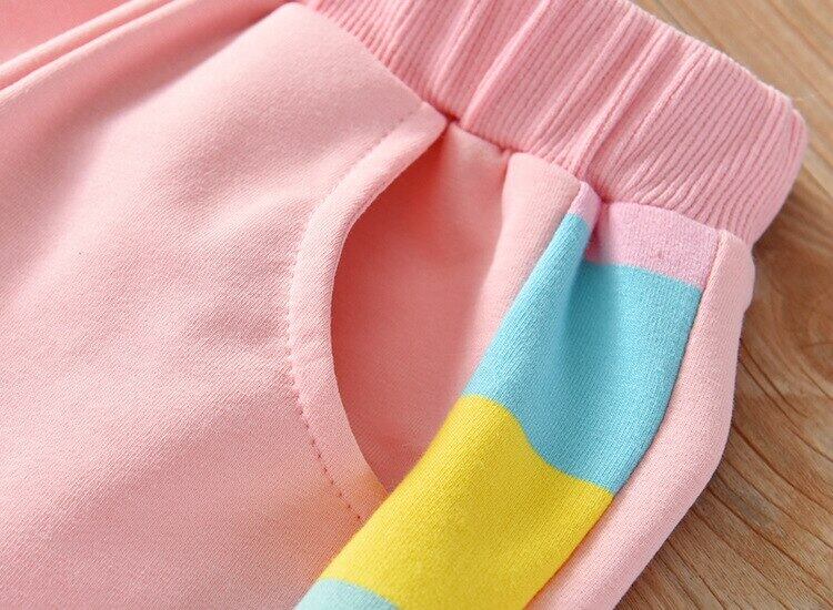 新作 ベビーガールズレインボーストライプ春秋スポーツ因果セット子供キッズフーディーTシャツパンツ服2〜8歳