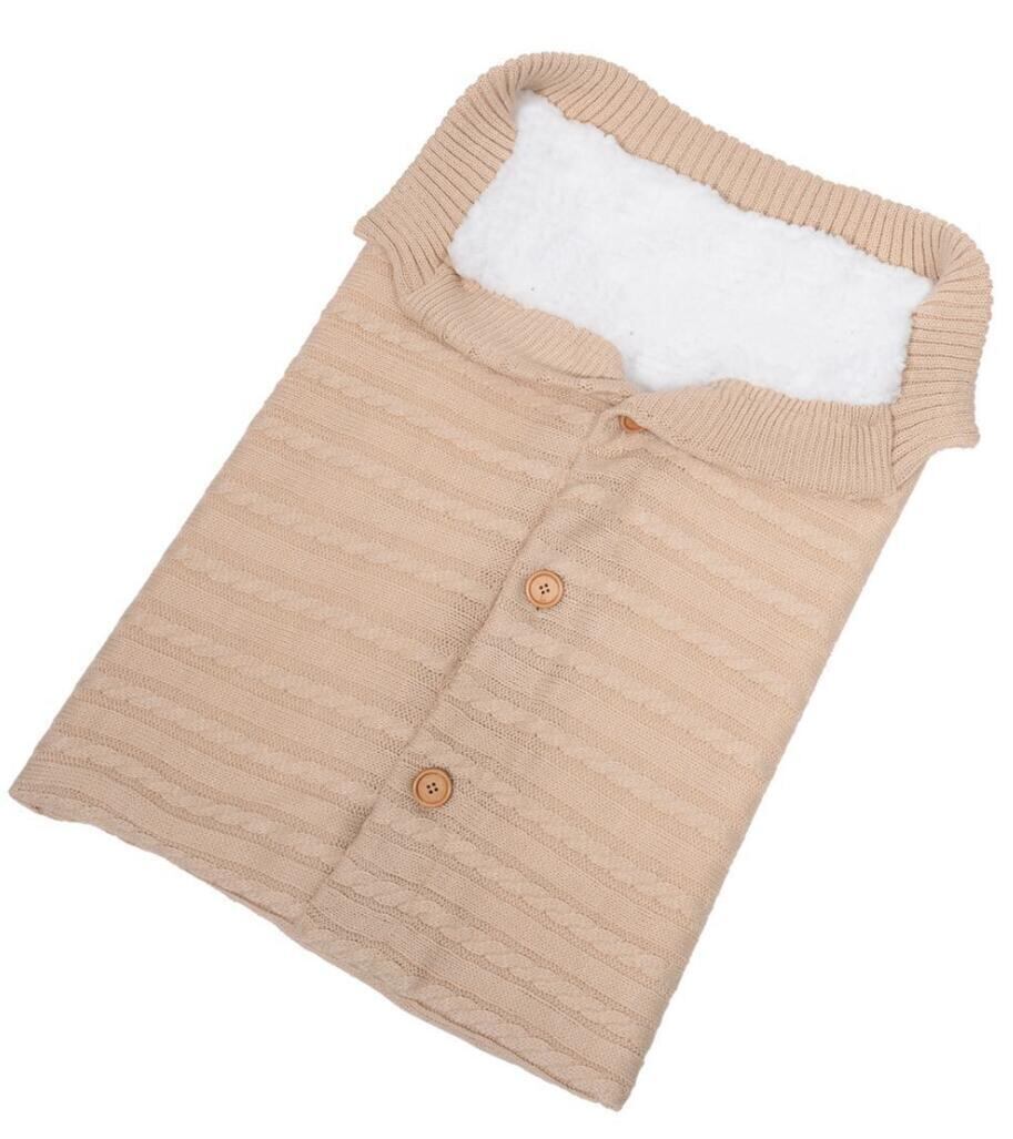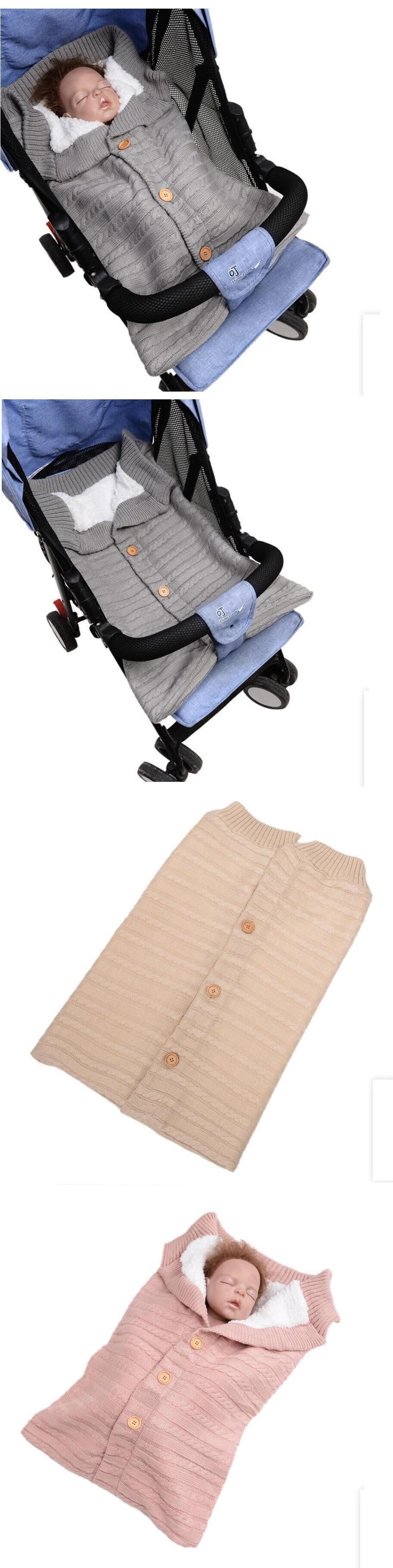 新作 ベビー寝袋封筒0-6M秋冬厚い睡眠袋幼児用車椅子ソリッドニット生まれおくるみラップ繭