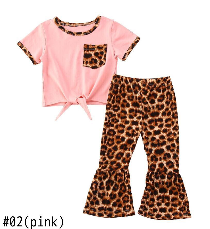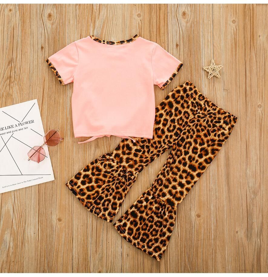 新作 子供服ショートTシャツ+ヒョウ柄フレアパンツベビーガールズ2点セットサマートドルガール衣装 レッド 夏物