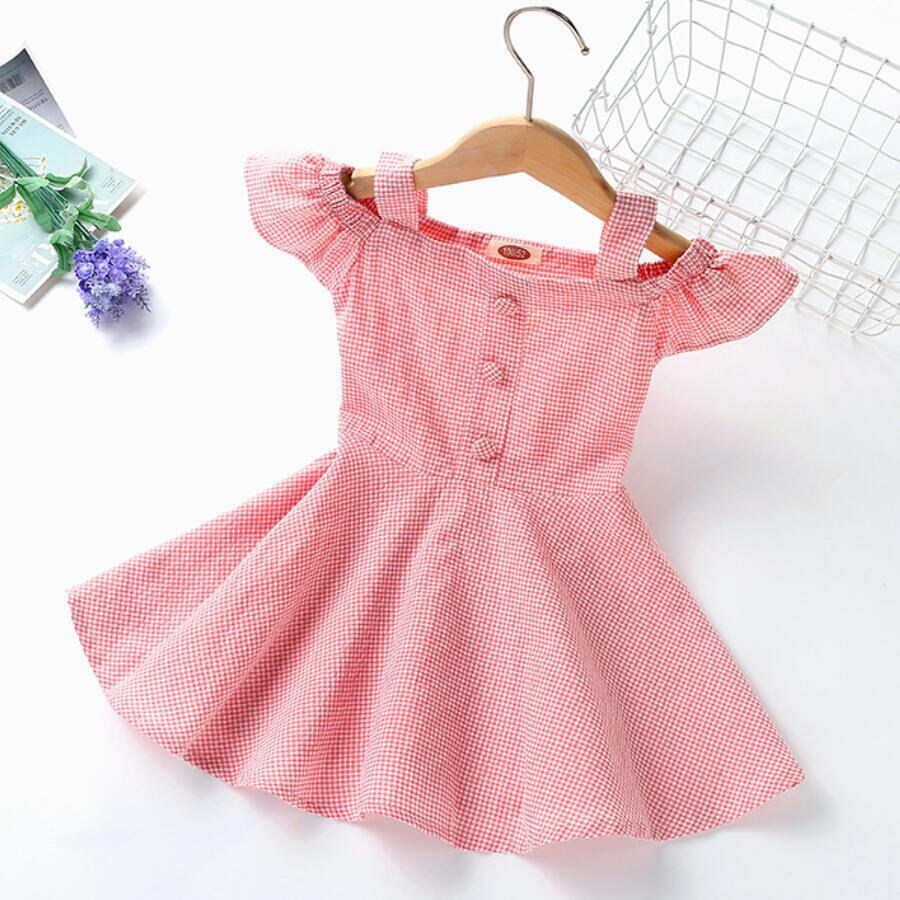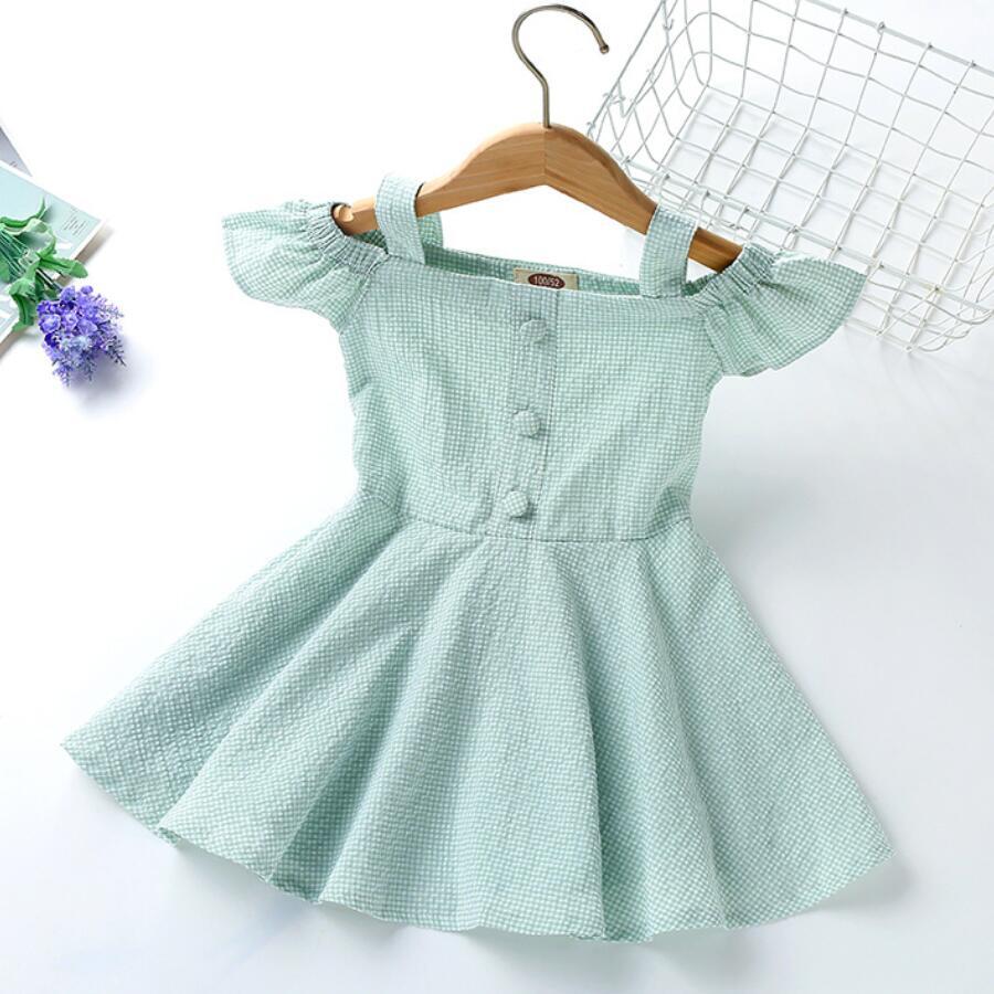 新作 女の子の夏のドレスボタン露の肩のドレス子供たちの甘いお祭り赤ちゃんの女の子Vestidos2 3 4 56年 大人ガーリー スウィート キュート カジュアル サマー 夏物
