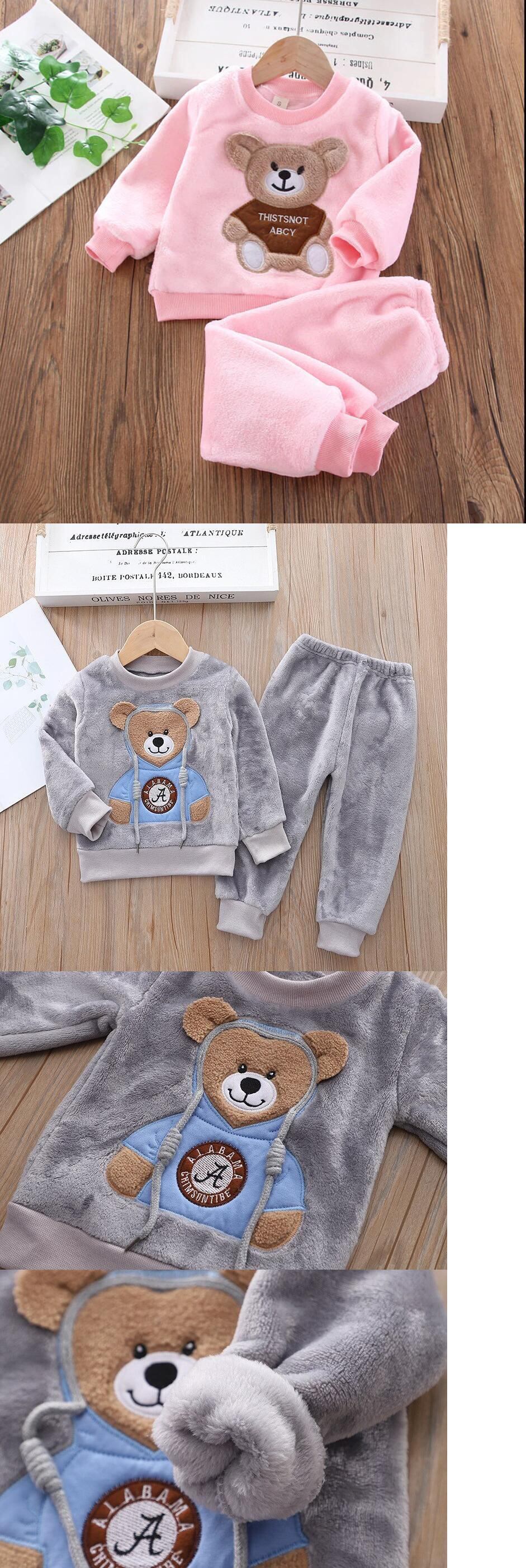 新作 ベビーボーイズガールズベルベットウォームベアセットウィンターTシャツフーディーアウタージャケットコートパンツ子供キッズ服セット