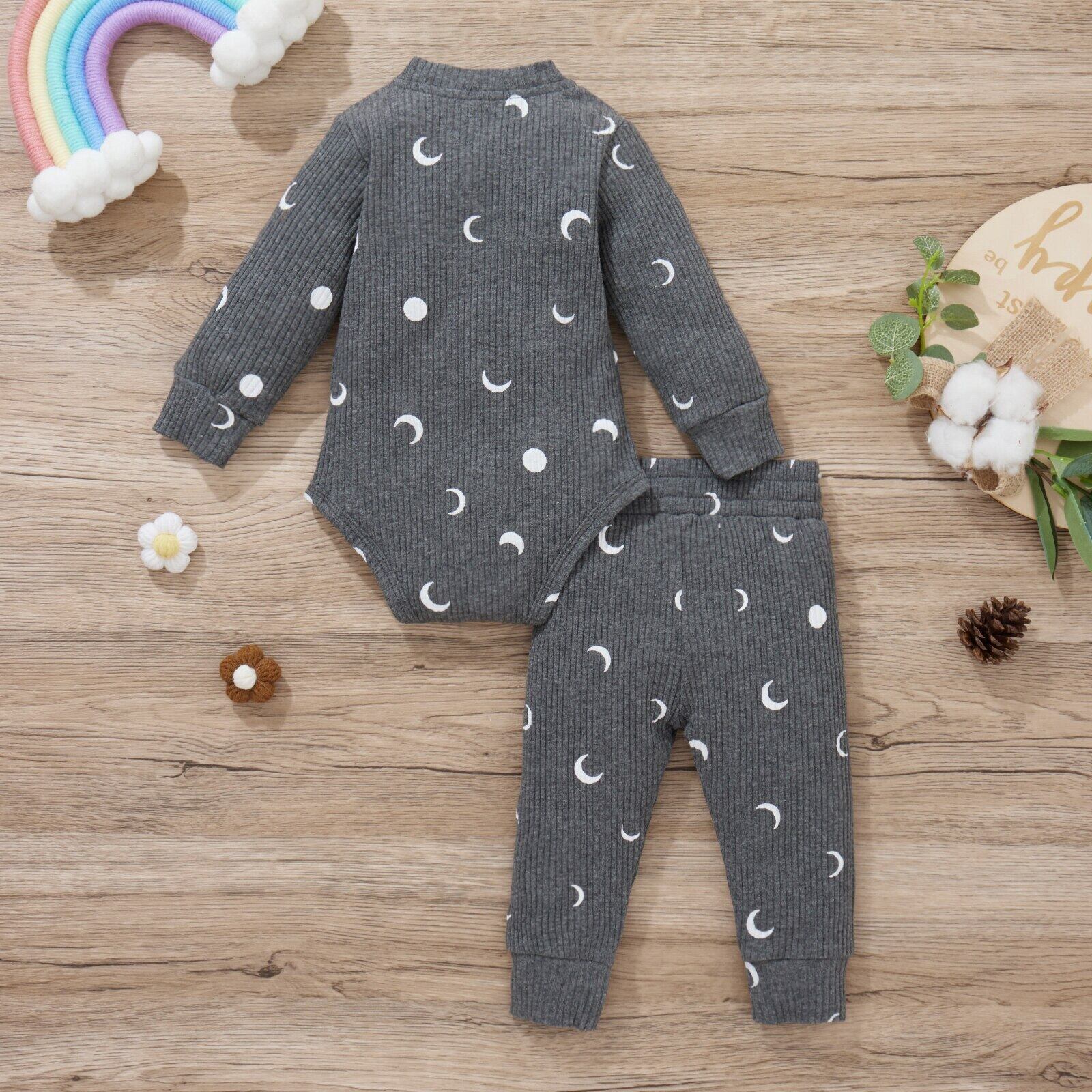 新作 Ma&Baby0-18M生まれの幼児ベビーガールズ男の子服セットムーンプリント長袖ロンパーパンツ衣装秋春sD11