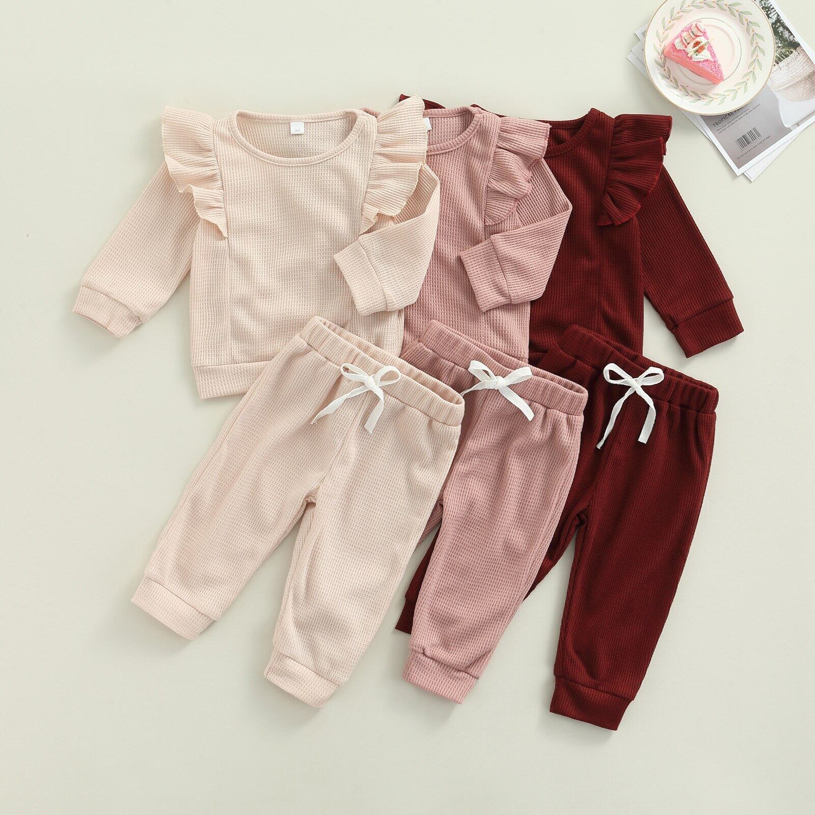 新作 Ma&Baby3M-4Y生まれの幼児用ベビーガールズ洋服セットソフトフリル長袖トップスパンツ衣装秋春sd11