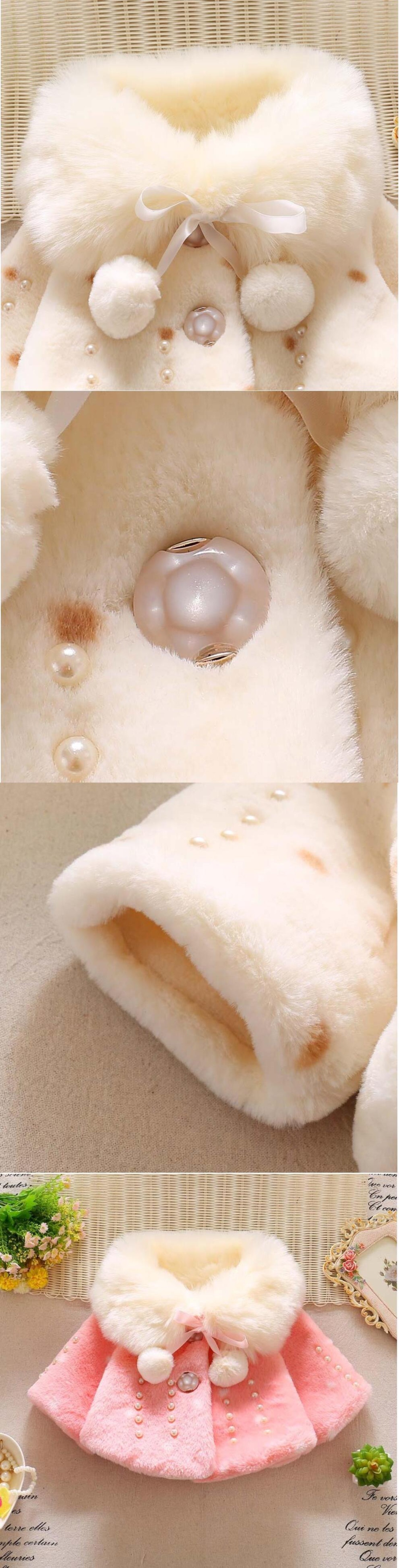 新作 ベビーガールズ服秋冬フェイクファーコートガールズジャケットパールウールカラーキッズ服トップチルドレンアウトウェアガール