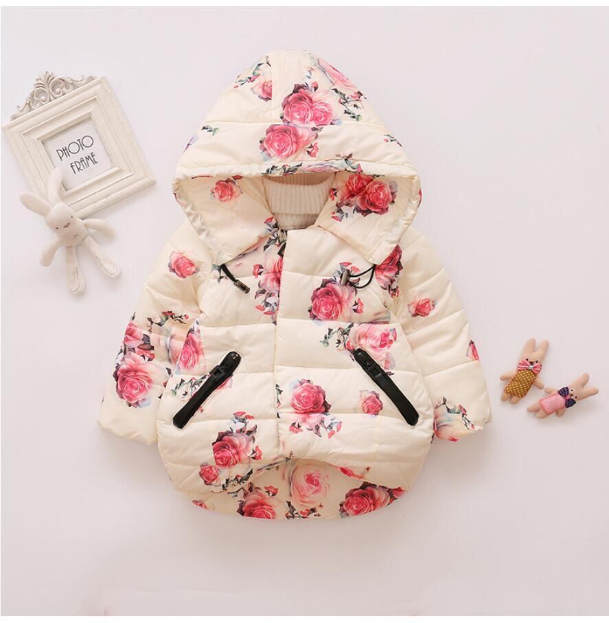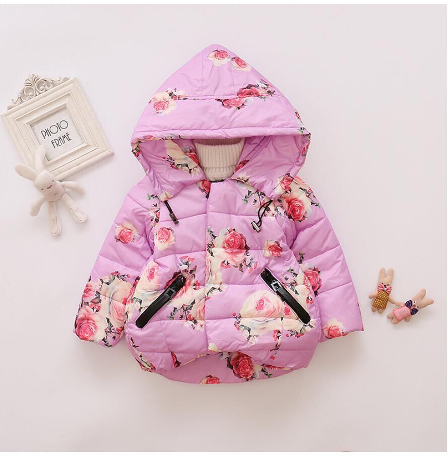 新作 ベビーガールズアウターパーカー冬の花コットンシックダウンコート子供かわいい暖かいフード付きジャケットコート子供服