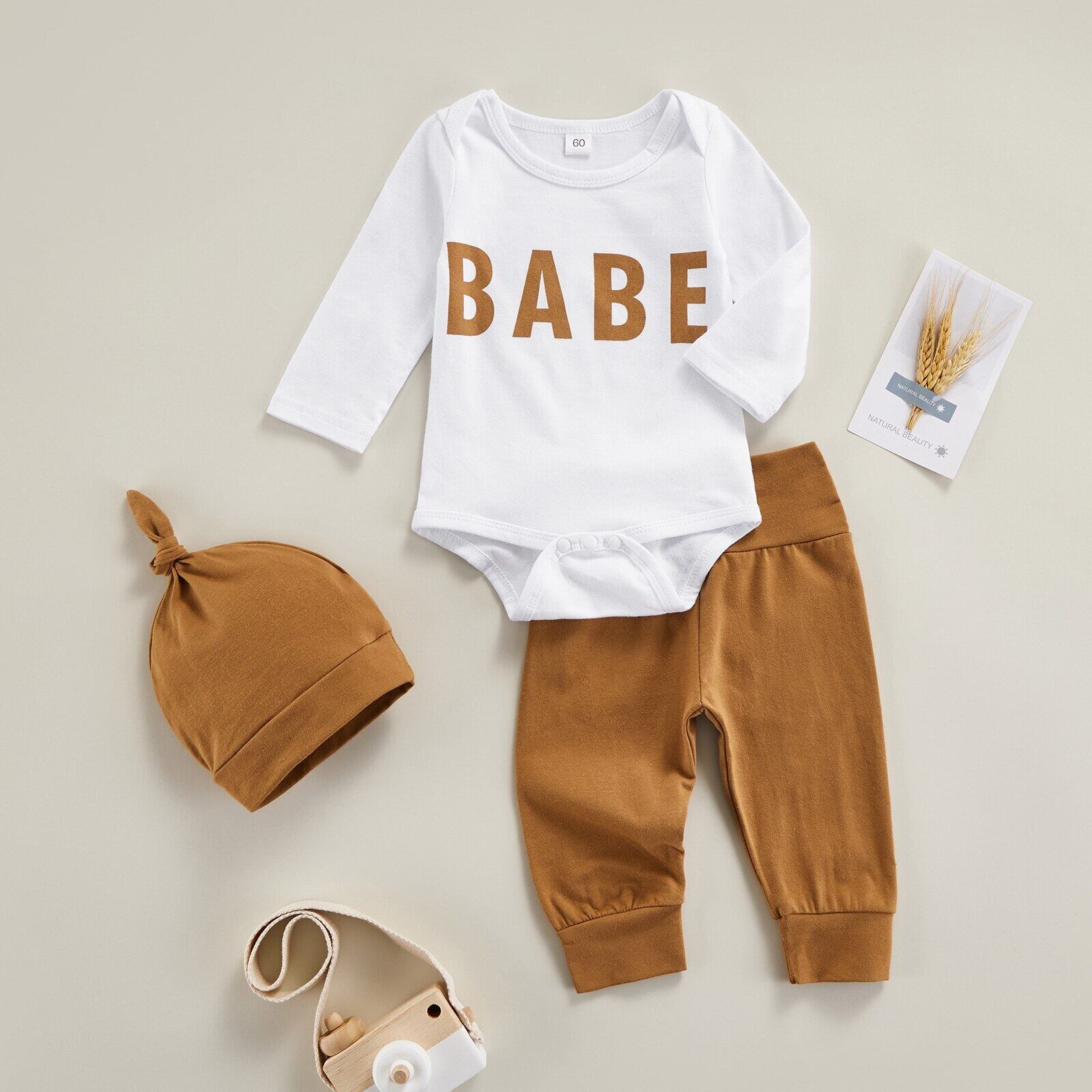 新作 Ma&Baby0-18M生まれの幼児ベビーガールズ男の子服セットレター長袖ロンパースパンツ帽子衣装秋春sD11