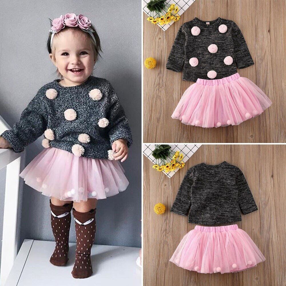 新作 2PCS幼児キッズベビーガール秋冬服セータートップス+チュチュスカート衣装6M-4Y