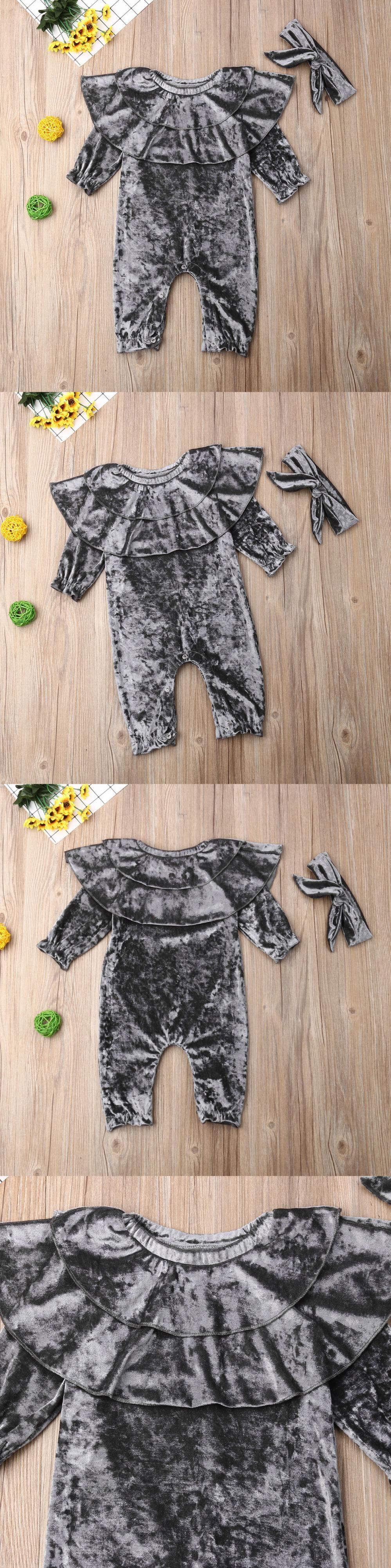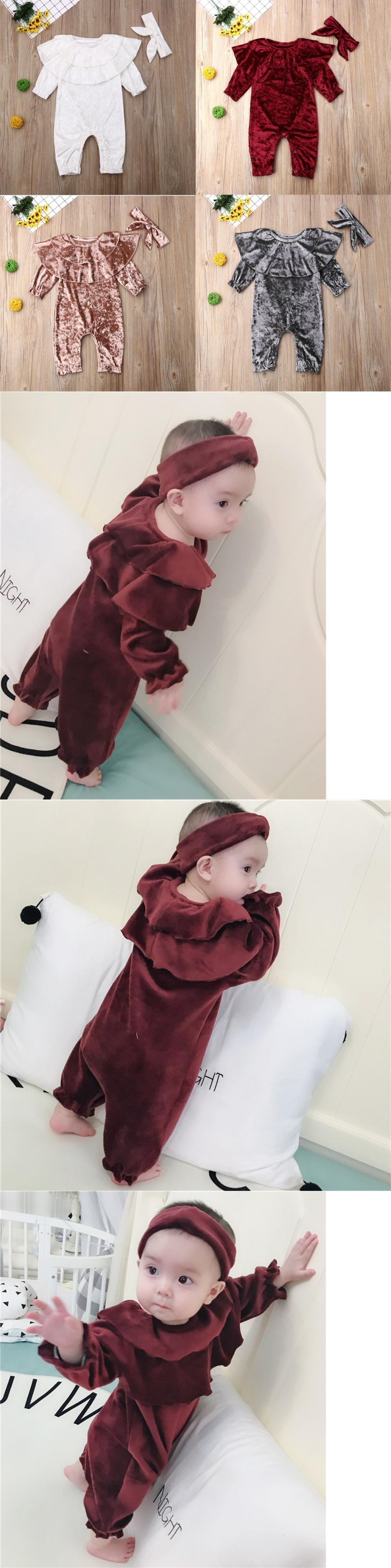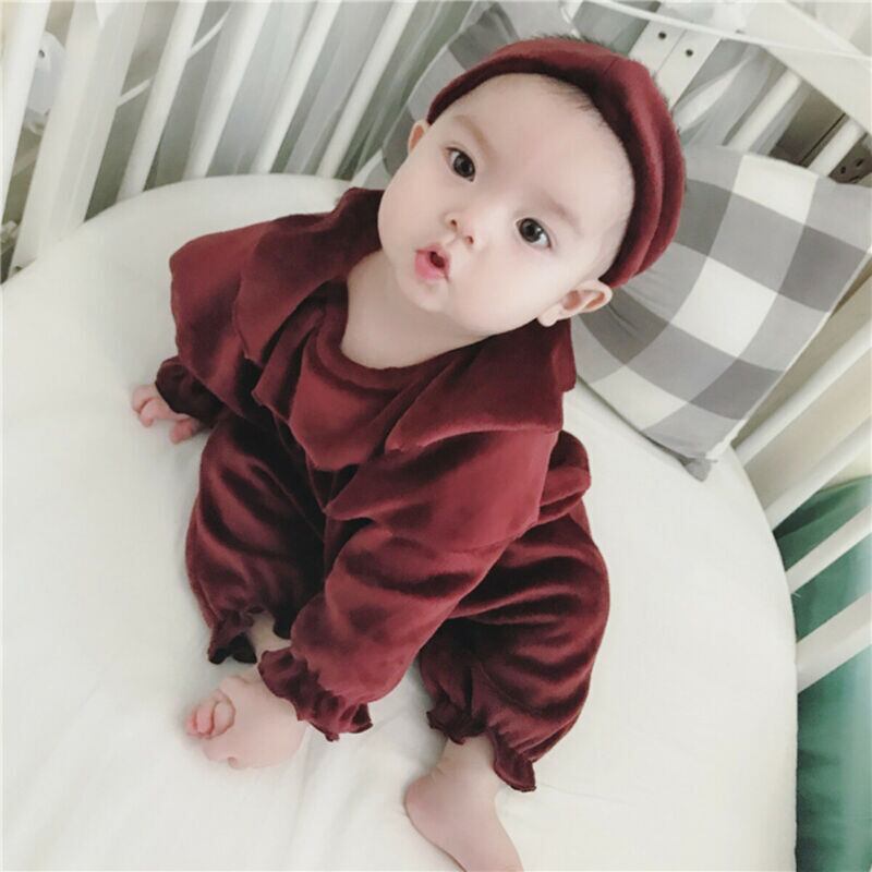 新作 冬の幼児ベビーキッズボーイズガールズコーデュロイフリルロンパースジャンプスーツ+カチューシャ衣装2PCSセット