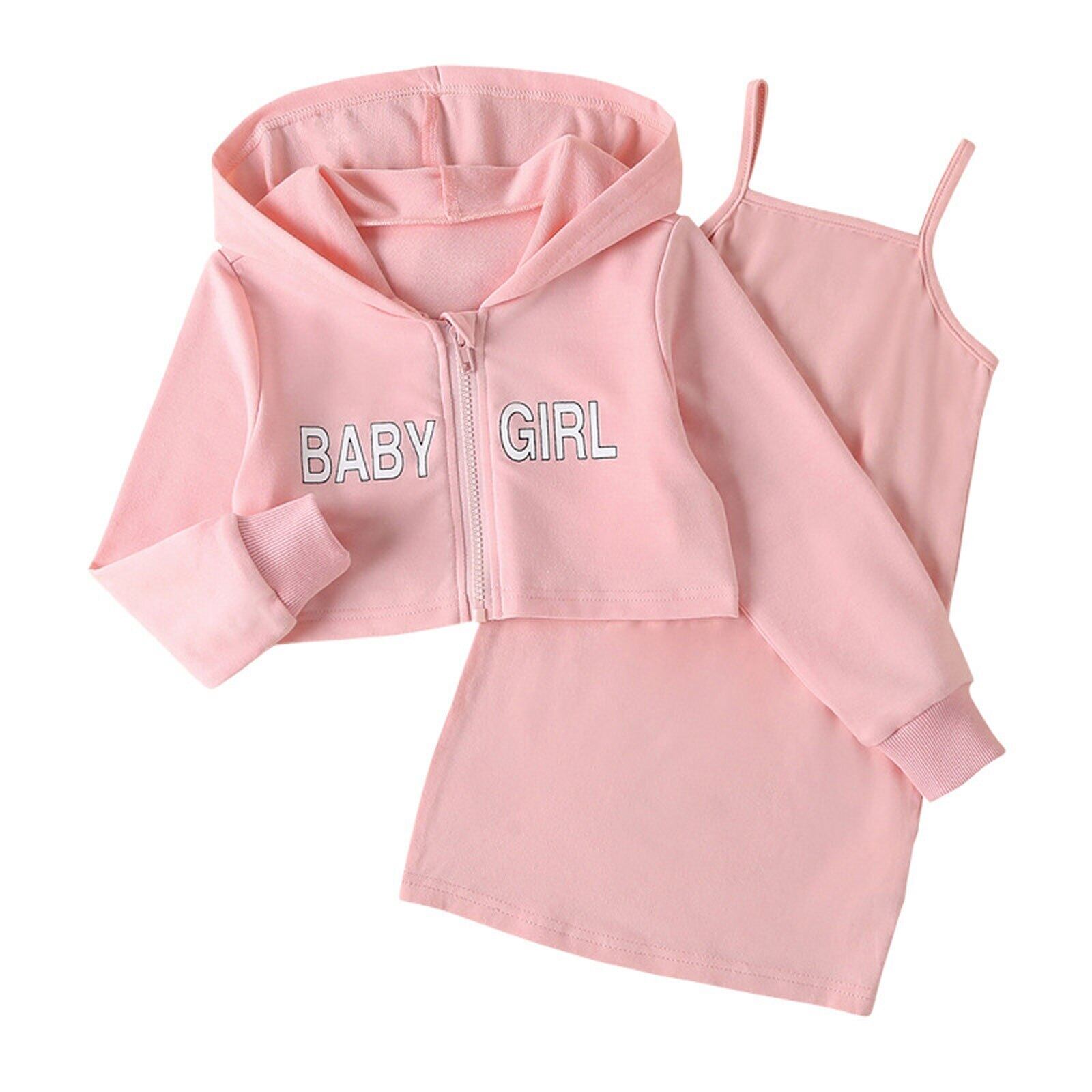 新作 Ma&Baby1-6Y幼児キッドガールズ洋服セットレターフード付きトップスコートノースリーブドレス衣装子供秋春s