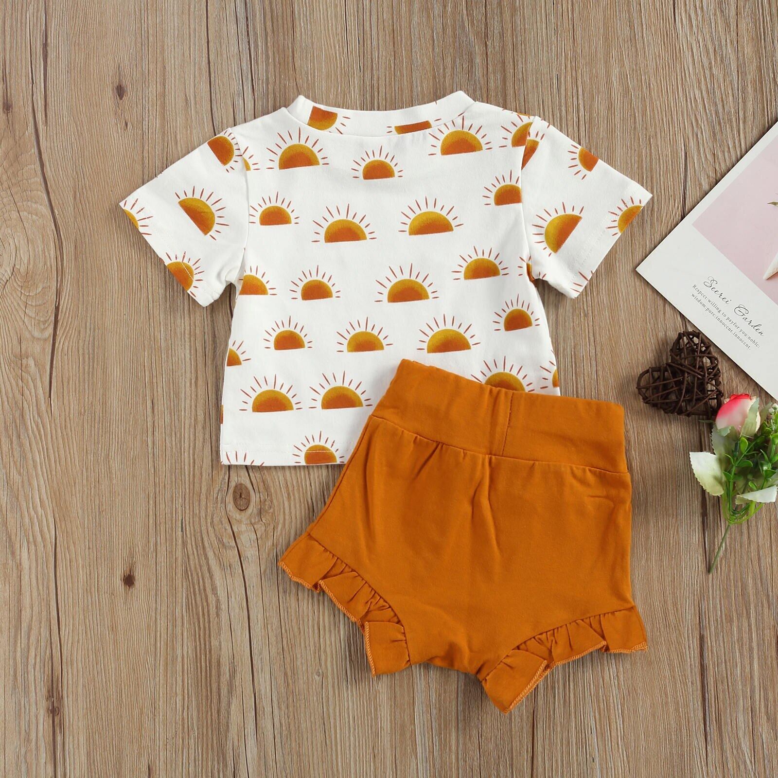 新作 0-24Mサマーベイビーガールズ洋服セットサンプリント半袖Tシャツフリルソリッドショーツ2本