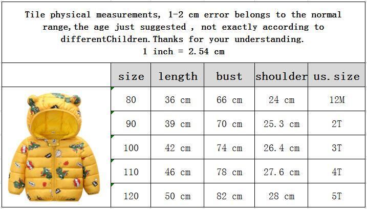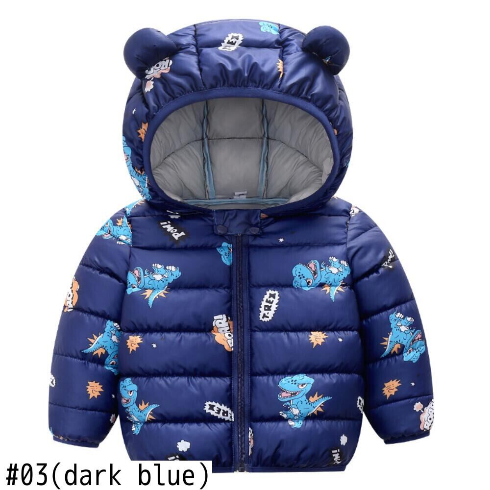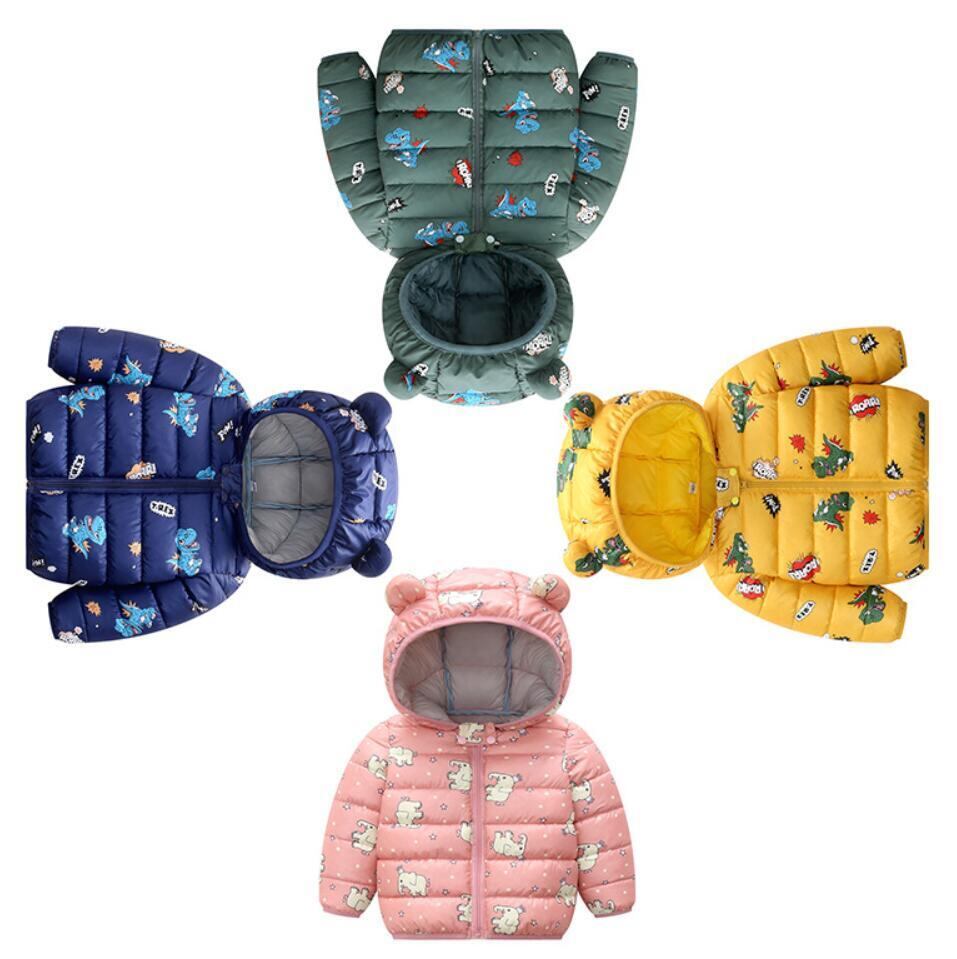 新作 漫画恐竜プリントジャケット男の子男の子冬服女の子子供ダウン綿パッド入りコートクマ耳コート&パーカー子供
