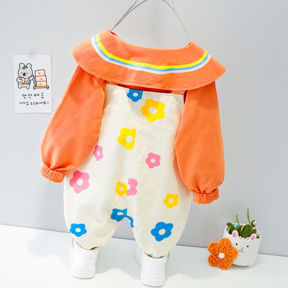 新作 子供セット2021秋の幼児幼児女の子漫画レインボーラビットトップス+オーバーオール2個スーツベビーキッズ服12 3 4Y