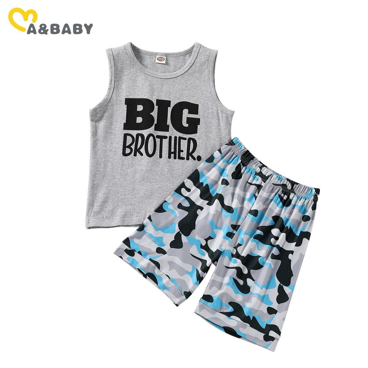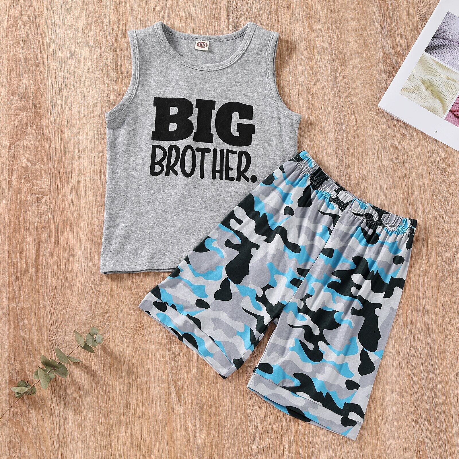 新作 Ma&Baby 2-7Y Summer Kid Boys Clothes Set Big Bro Letter Vest Tops Camo Shorts Outfits Children s DD43