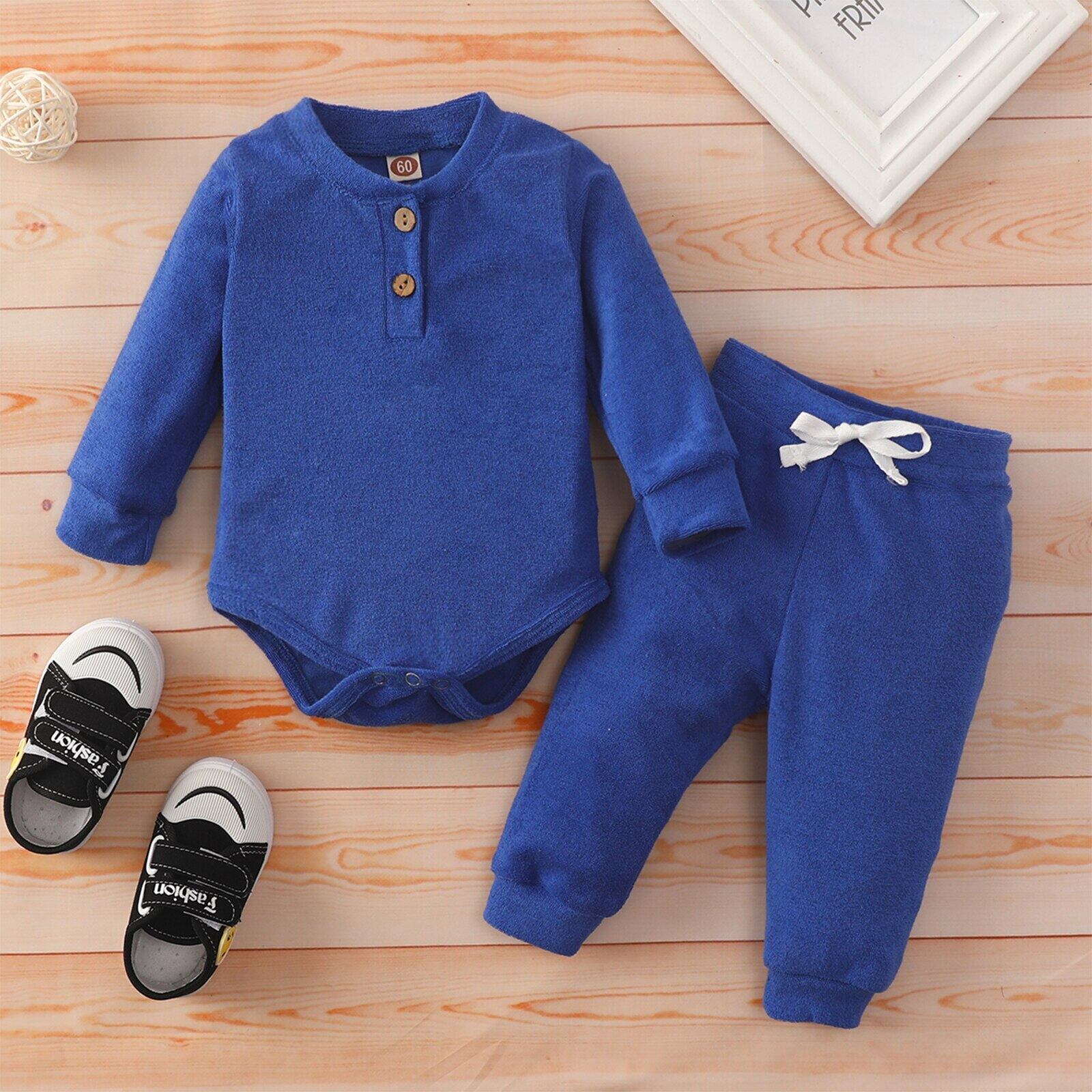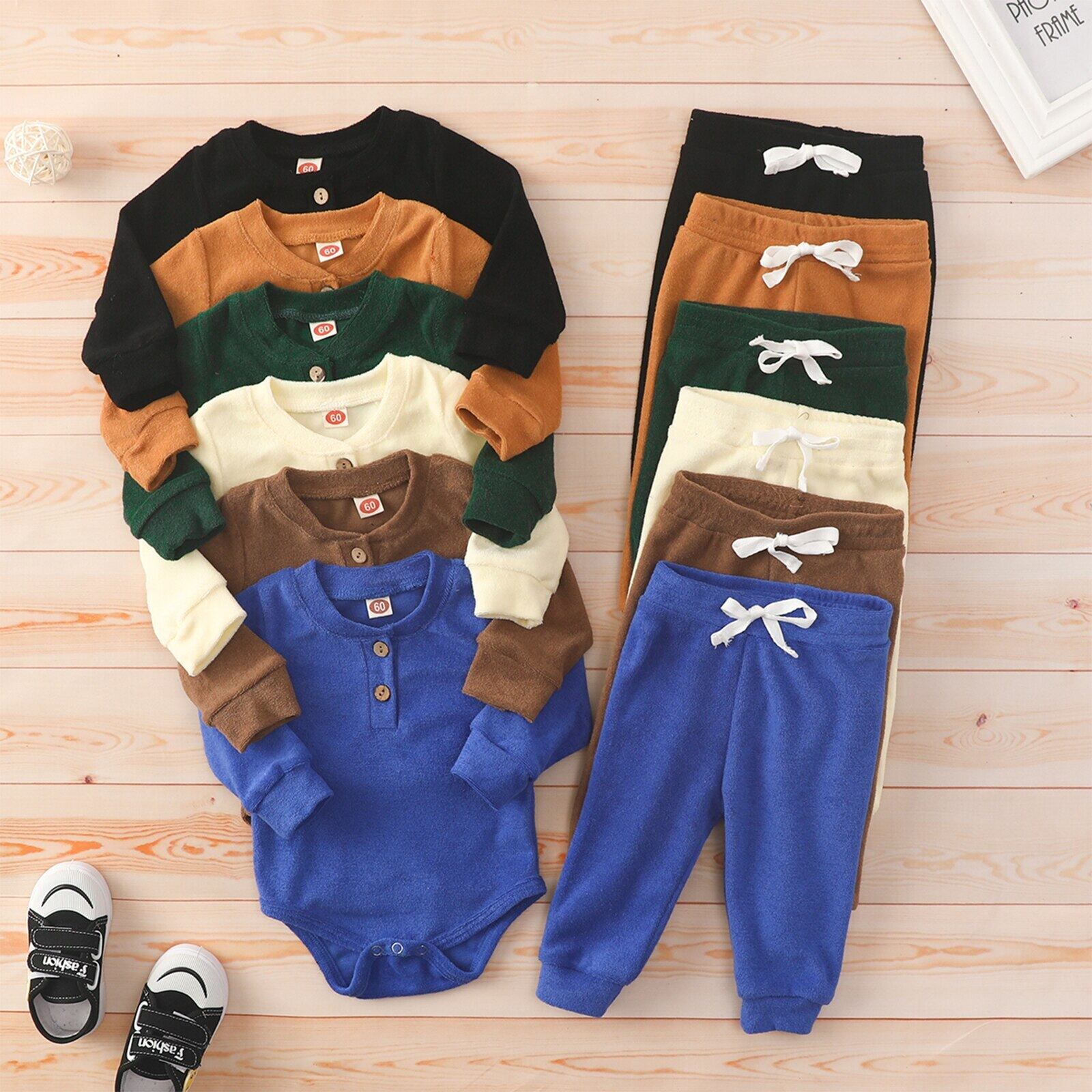新作 Ma&Baby0-24M生まれの幼児男の子女の子服セットソフト長袖ロンパースパンツ衣装秋春D11