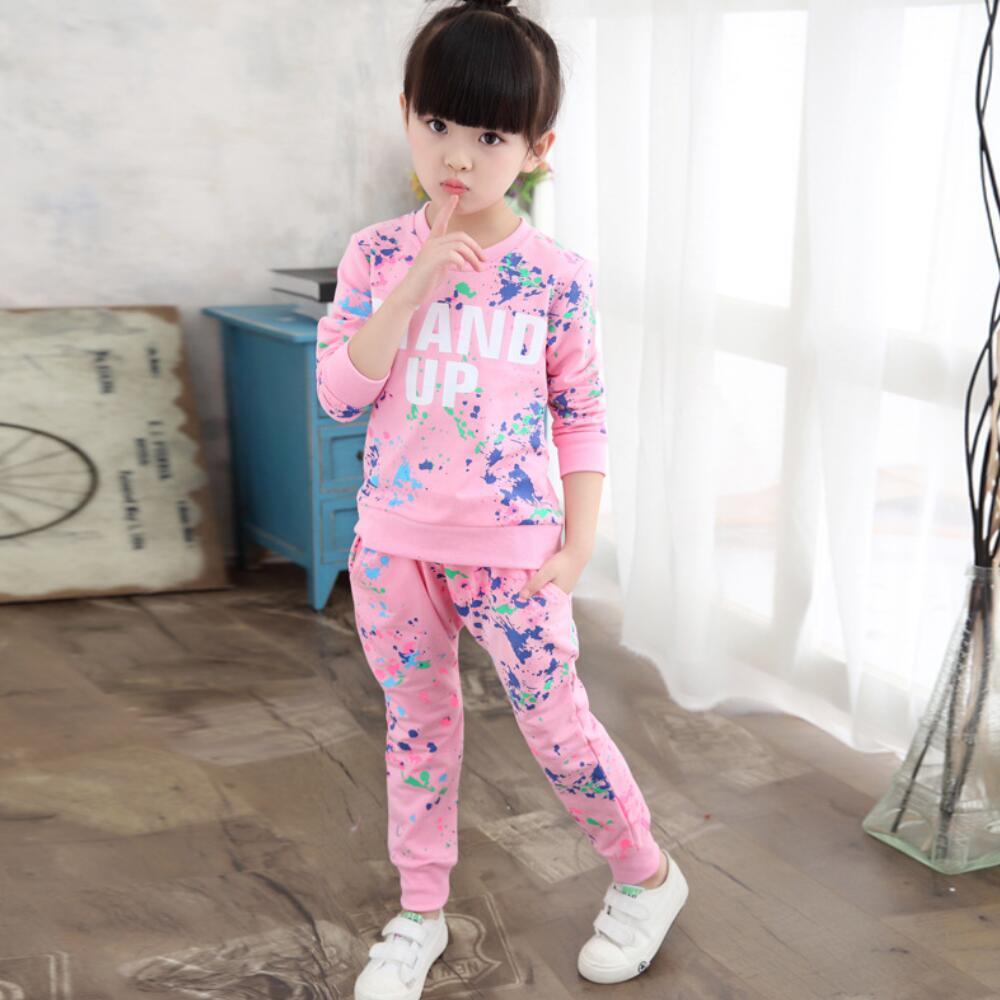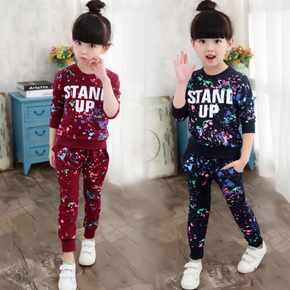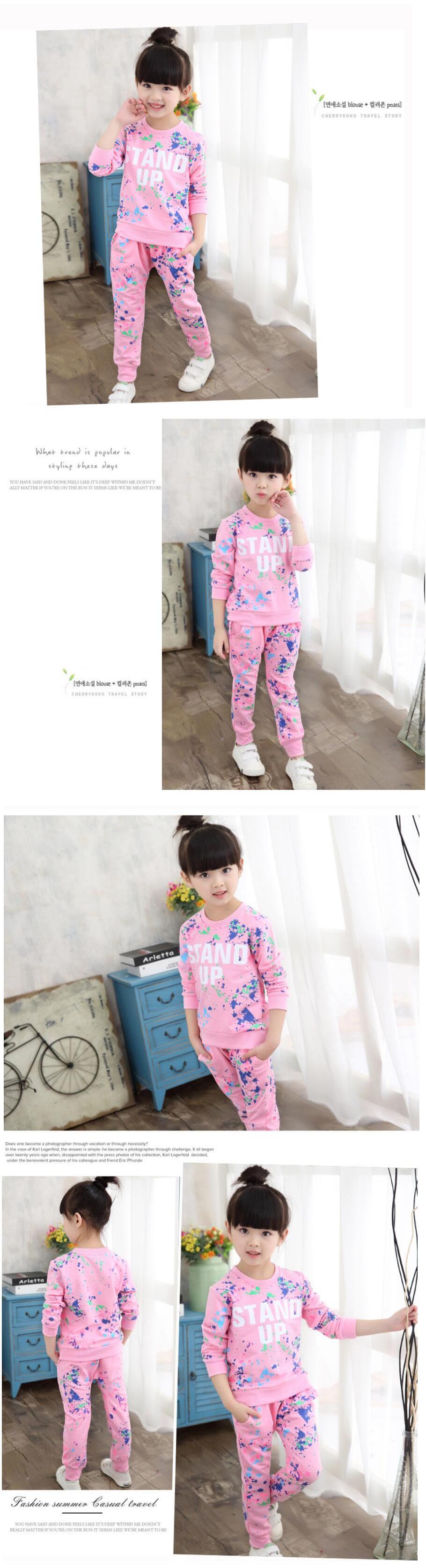 新作 キッズガールズ春服フルコットンTシャツ+パンツスーツチャイルドセータースーツツーピースセット34 5 6 810年