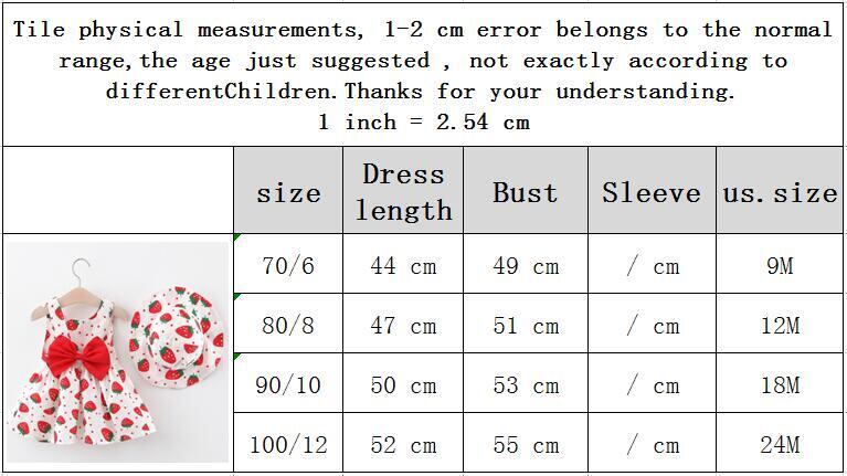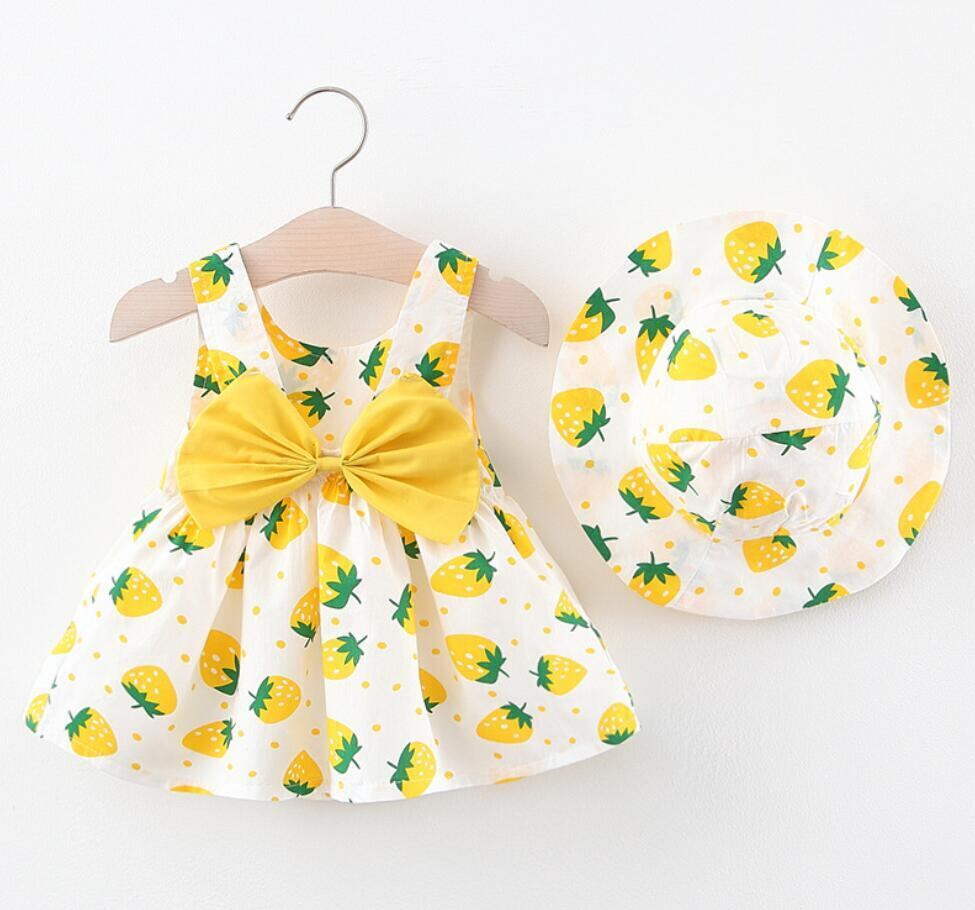 新作 2021年夏のノースリーブサンドレスガールズストロベリープリントキッズドレスサンハット生まれの赤ちゃん薄片