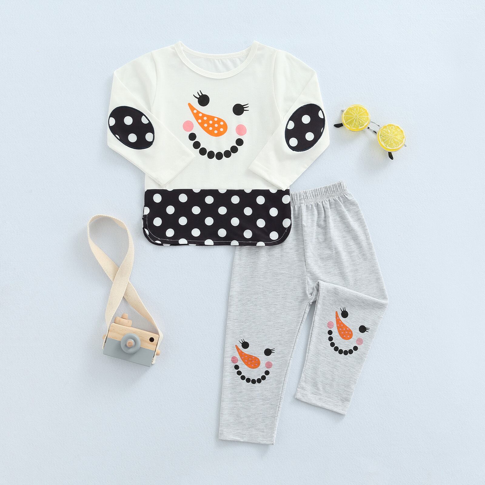 新作 Ma&Baby1-6Yクリスマス幼児子供服セット雪だるまプリント長袖トップスパンツクリスマス衣装D84