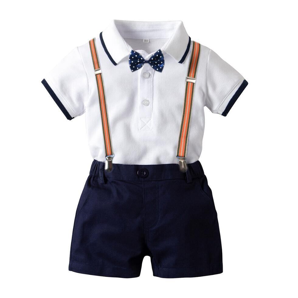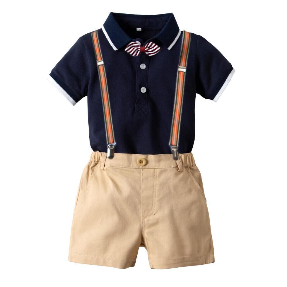 新作 男の子セット幼児生まれの男の子服ショーツ袖トップス+オーバーオール2PCS衣装サマーベベス