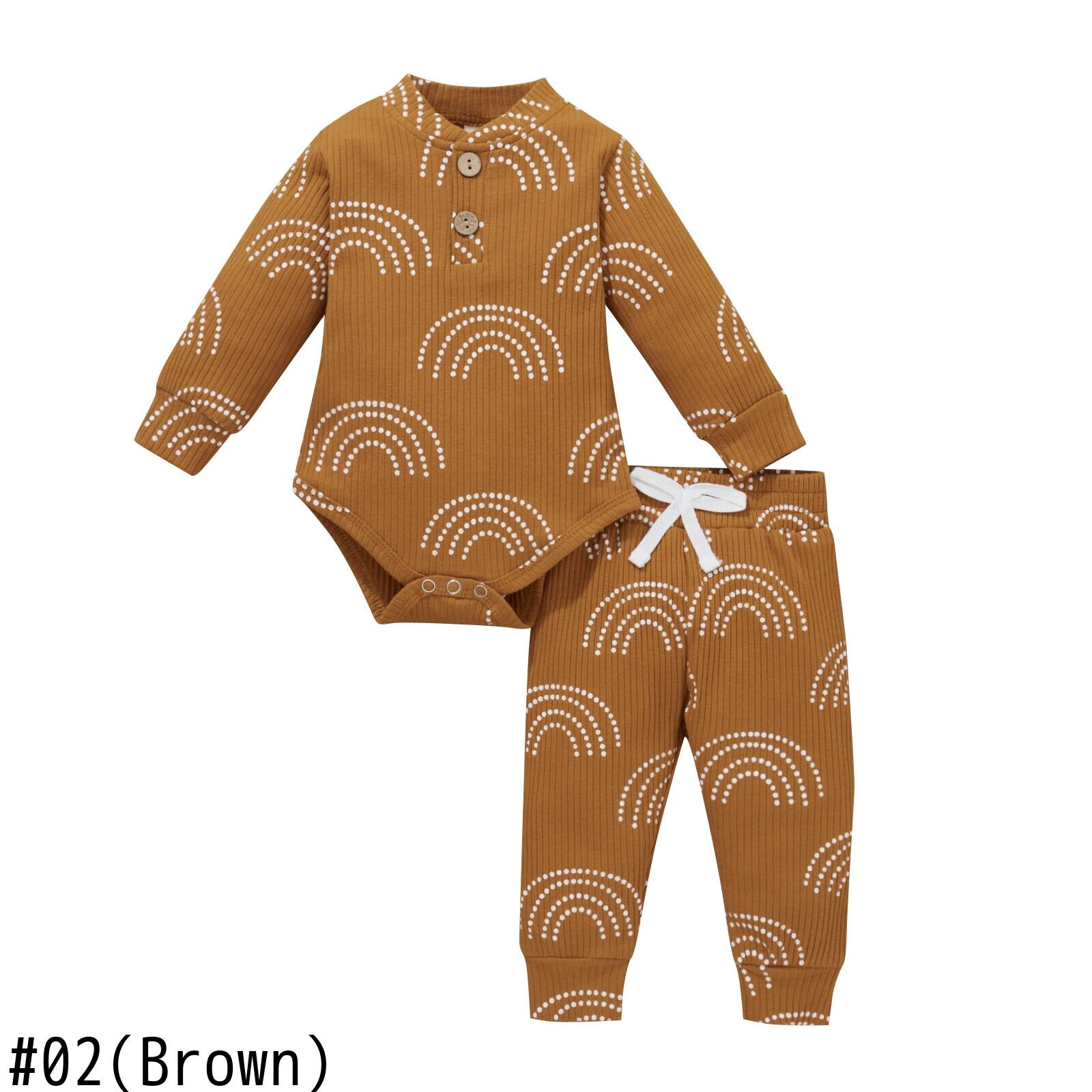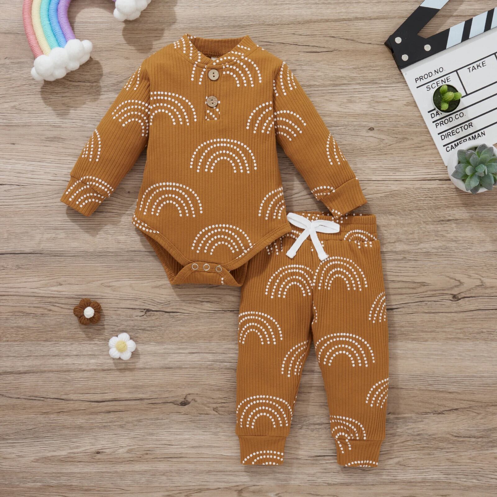 新作 Ma&Baby0-18M生まれの幼児男の子服セットレインボープリント長袖ロンパースパンツ衣装秋春sD11