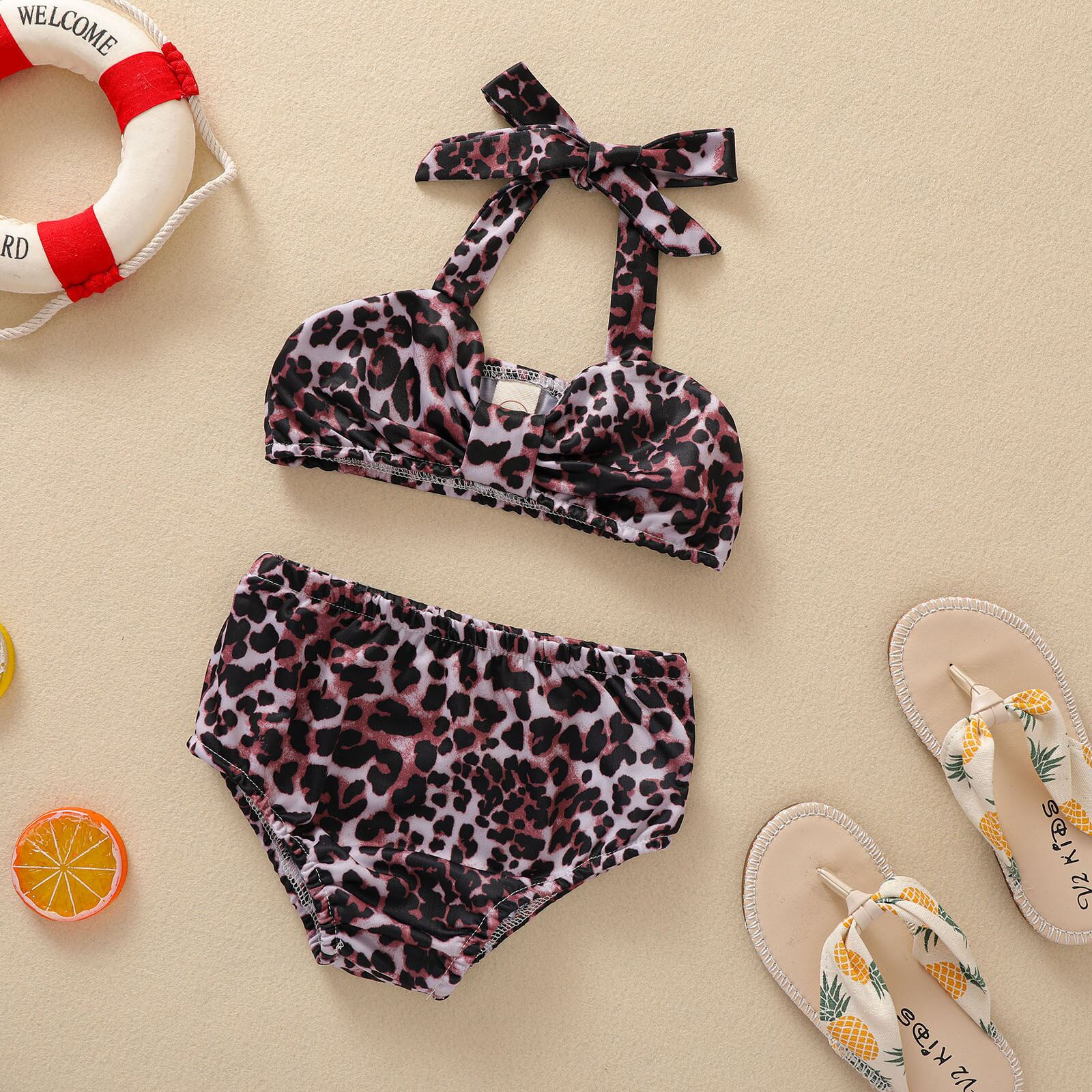 新作 幼児の女の子ヒョウ印刷水着ベビーノースリーブホルタートップ+ショーツ夏のツーピース水着