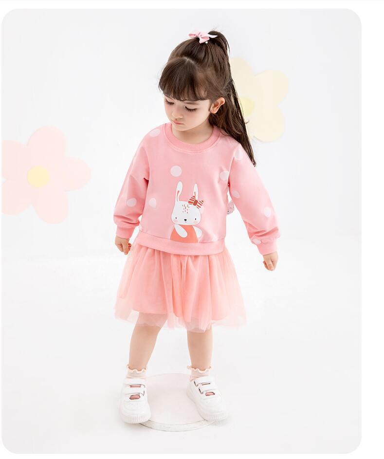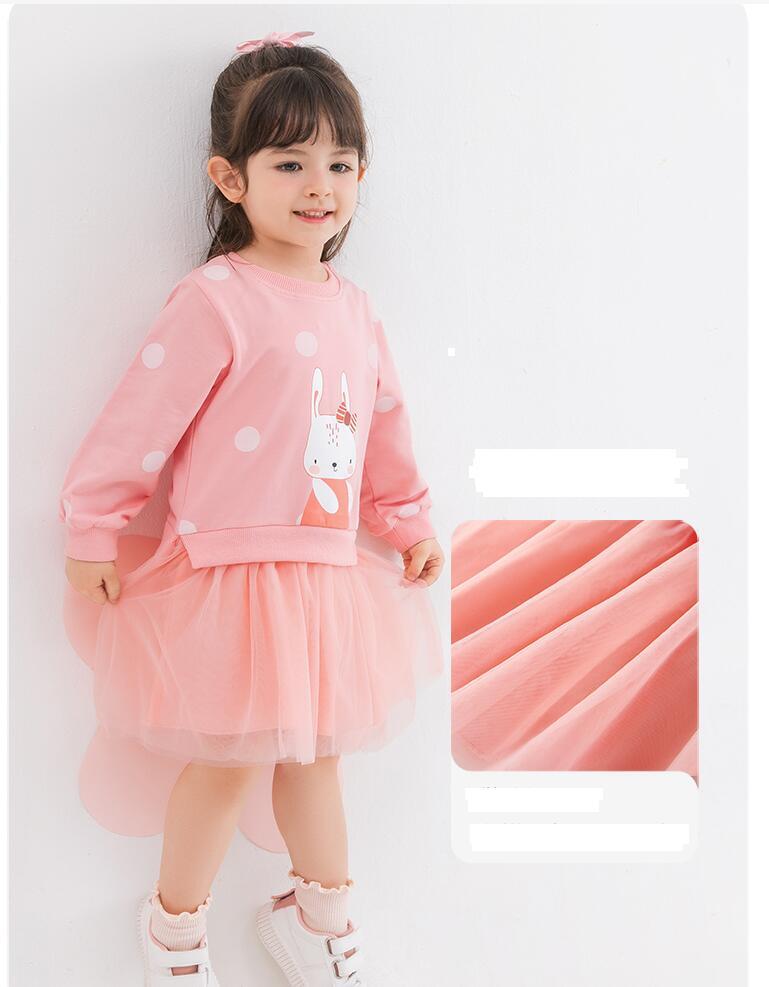 新作 キッズ漫画ウサギ長袖パーカーガーゼドレス女の子ドレス因果関係パーティーの子供水玉