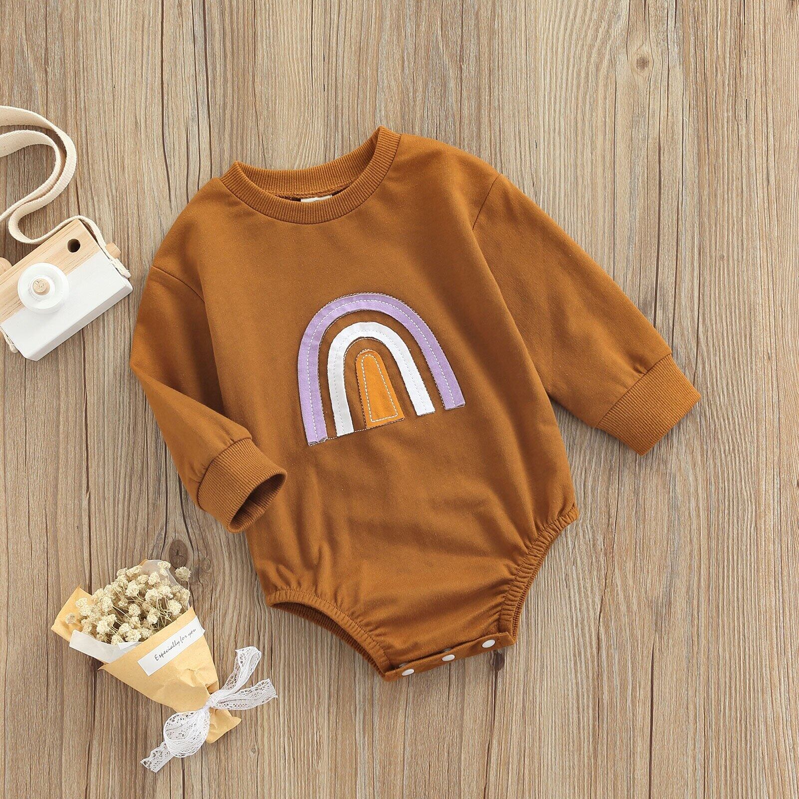 新作 Ma&Baby0-18M生まれの幼児ベビーガールズボーイズレインボーロンパース長袖ジャンプスーツかわいいベビー秋春sD11