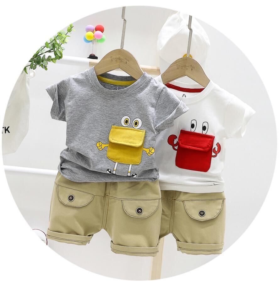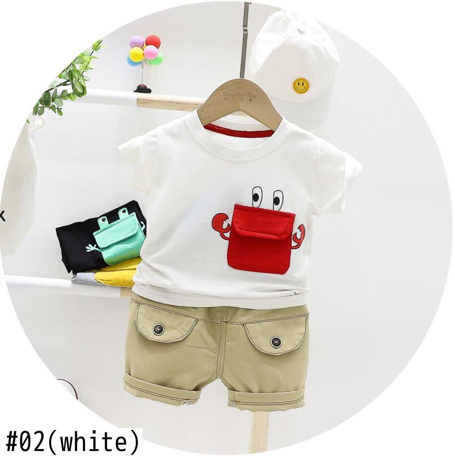 新作 男の子2個セットサマーフロッグポケットTシャツデニムショーツ子供スポーツスーツ男の子服トラックスーツ